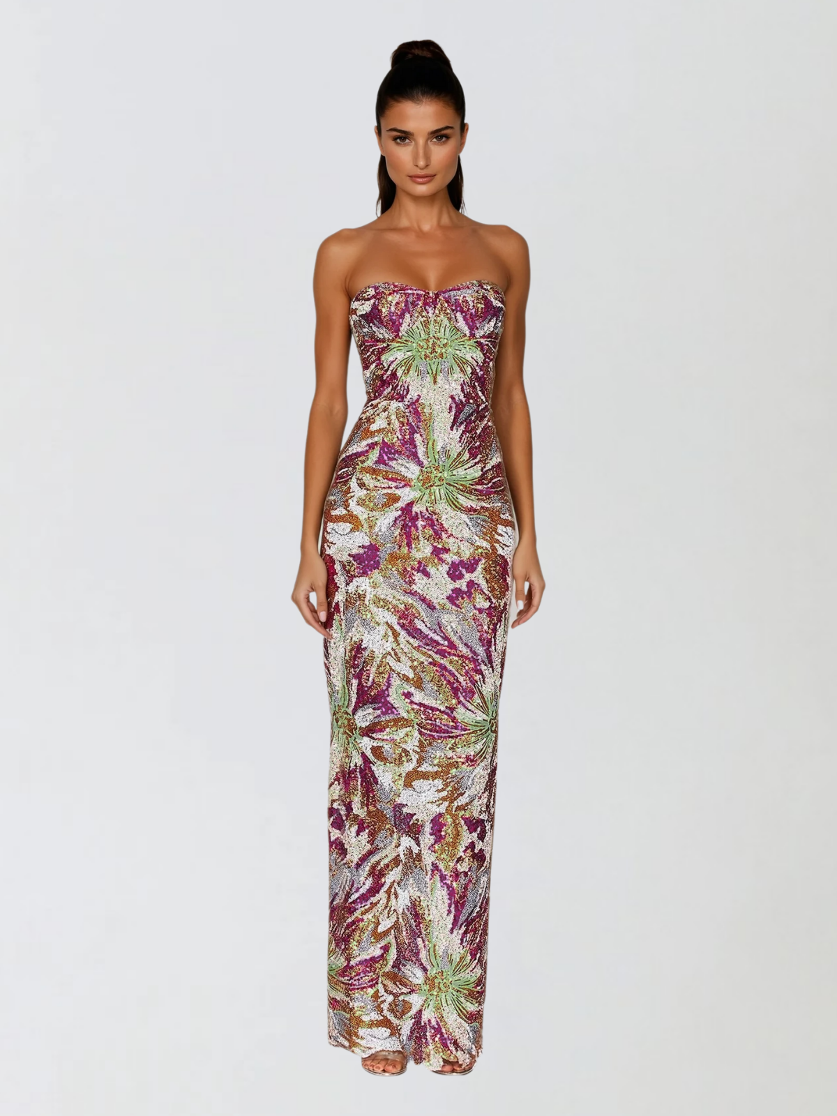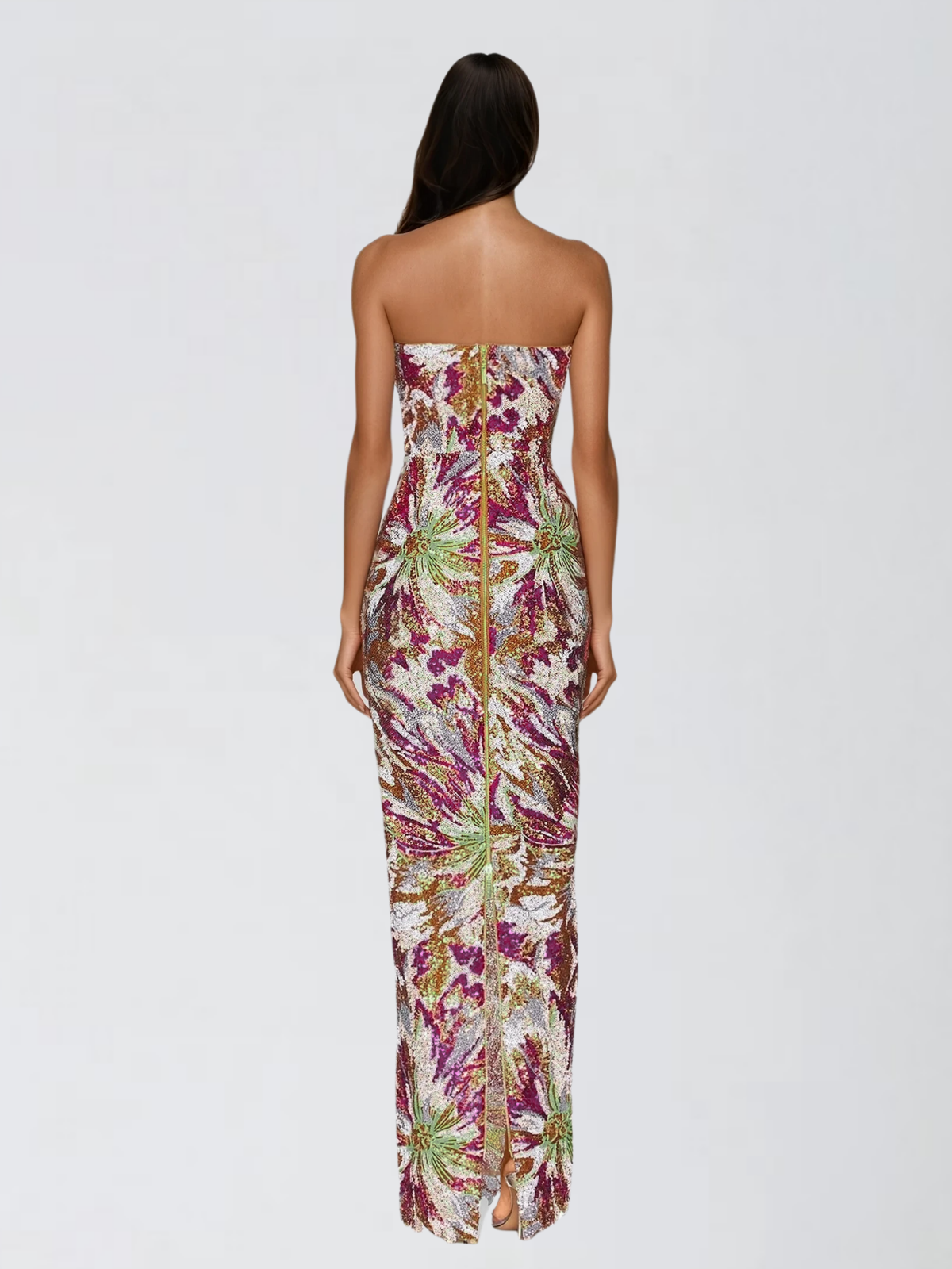 Rexlyra Strapless Sequin Firework Maxi Dress