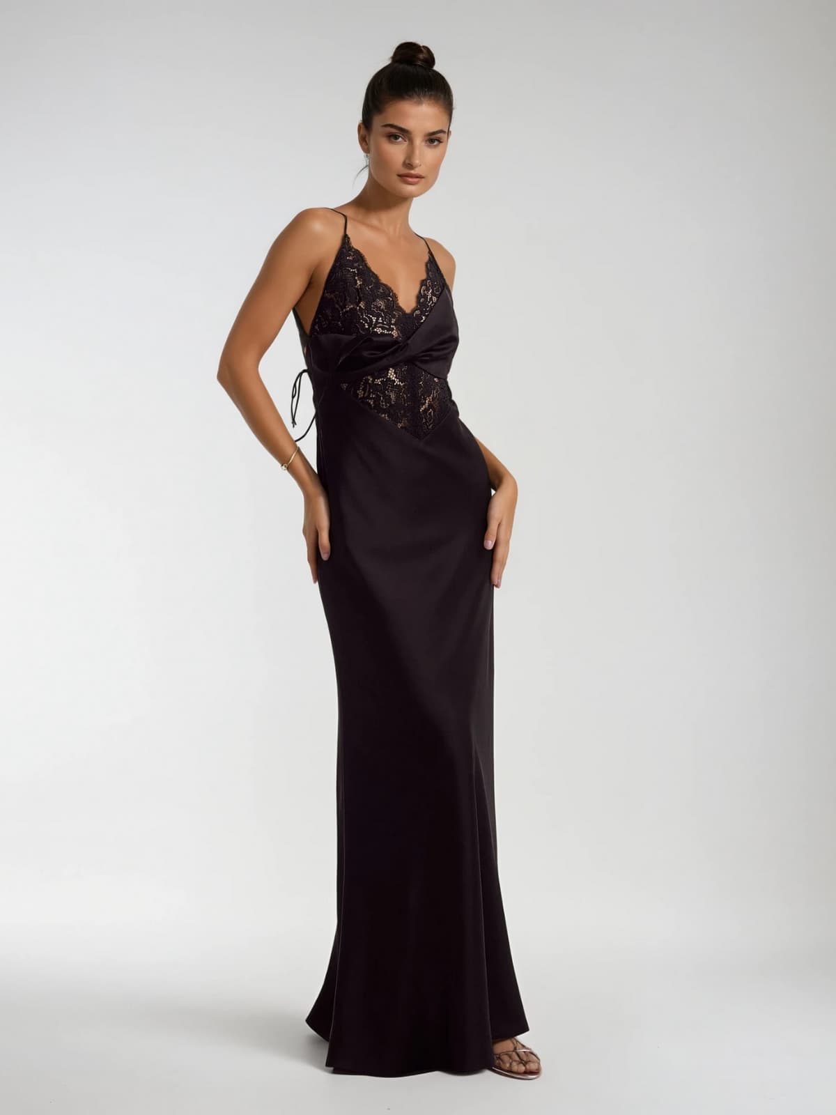 Ronna Spaghetti Lace Maxi Dress In Black