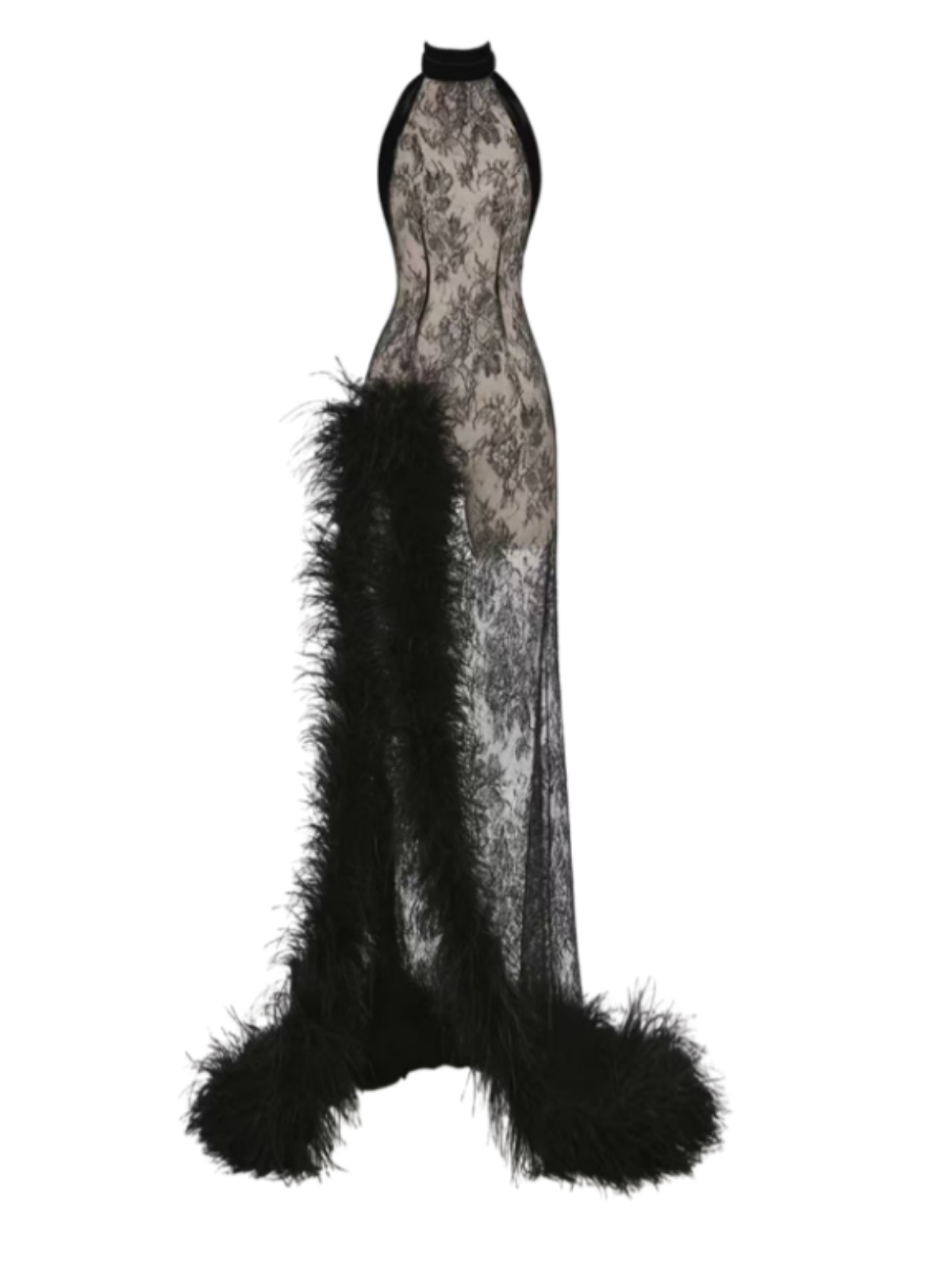 Rovynx Backless Split Lace Fur Maxi Dress