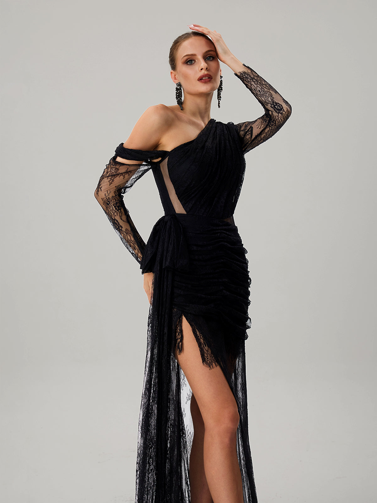 Farooq Lace Mesh Split Maxi Dress