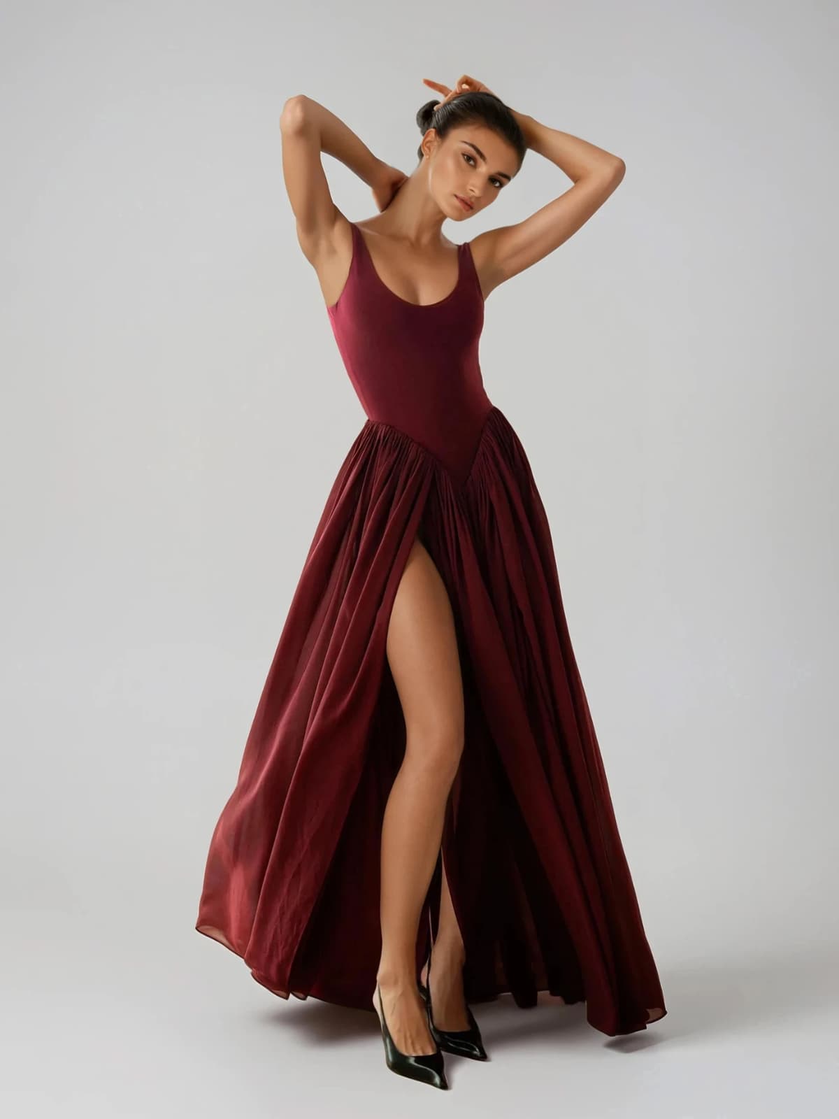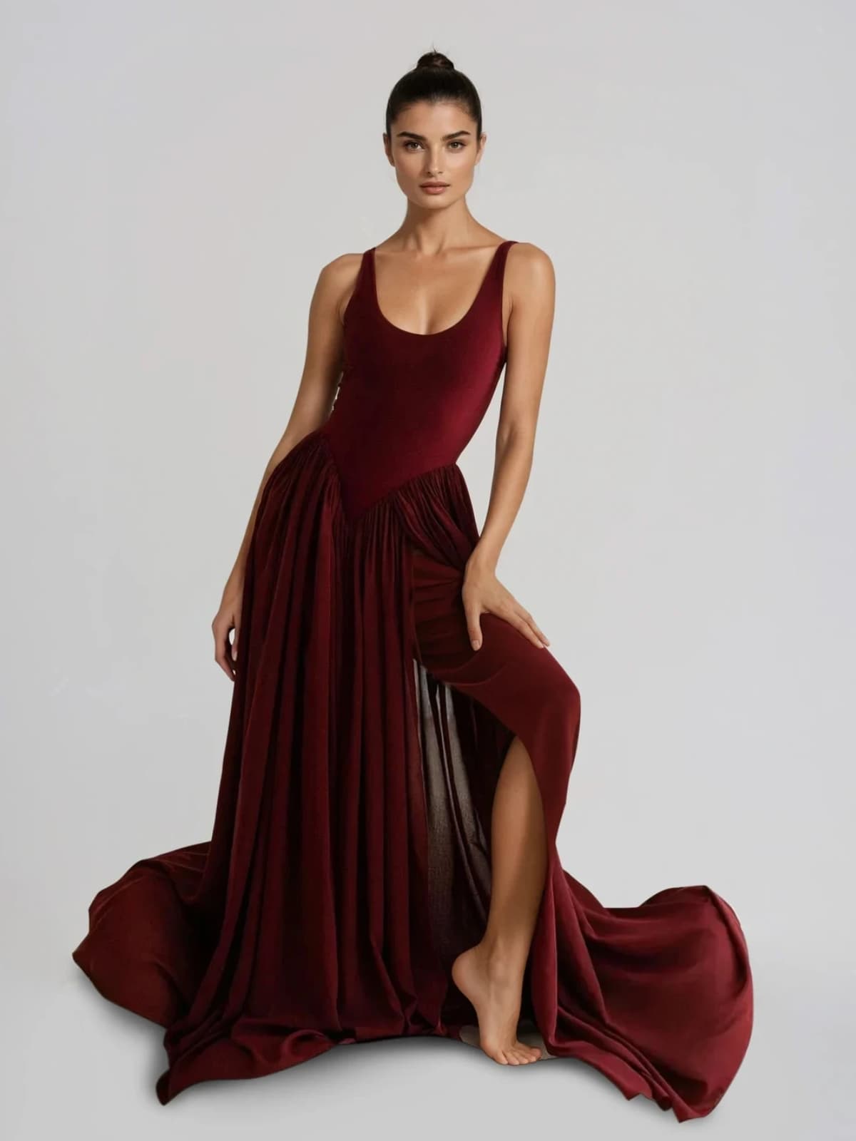 Oxavryn U Neck Split Flared Maxi Dress