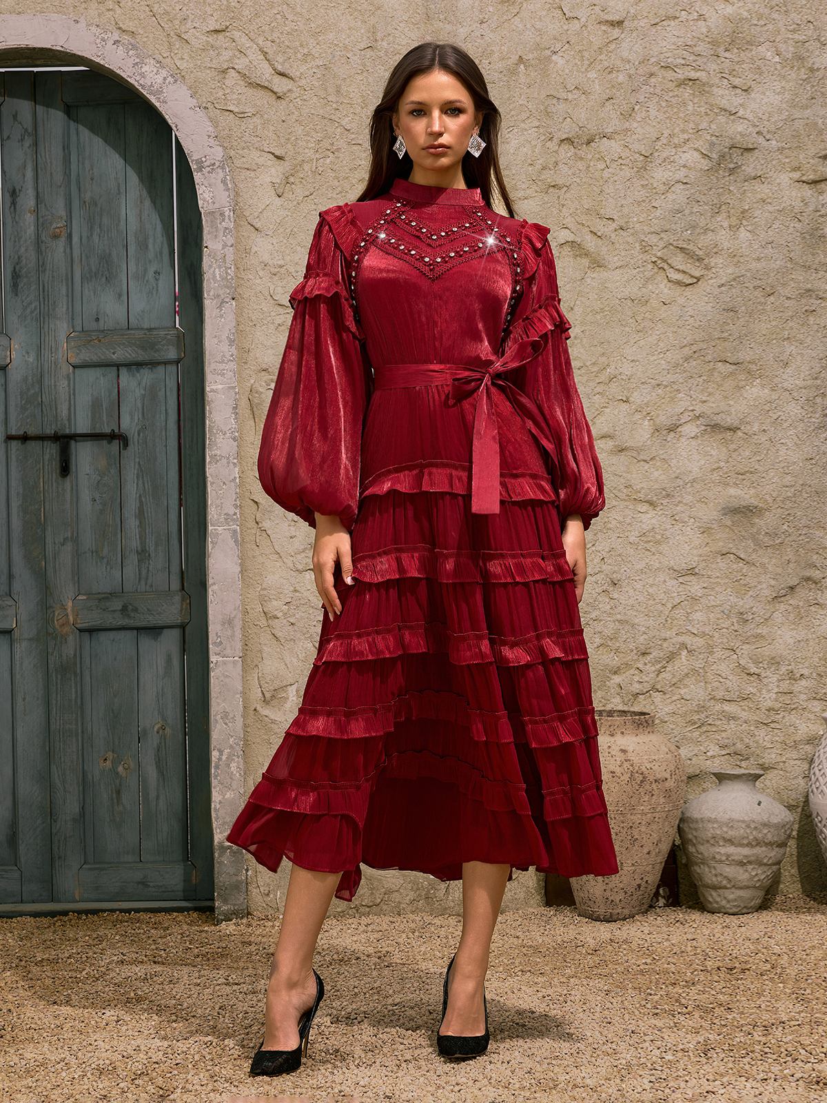 Dewitt Ballon Sleeve Ruffle Tiered Midi Dress