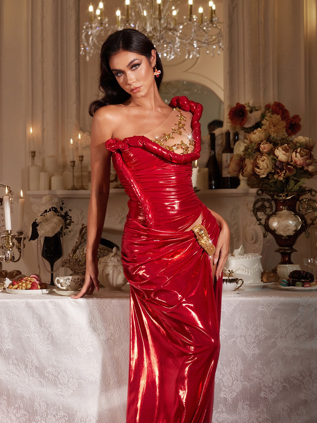 Fiorino One Shoulder Crystal Maxi Dress