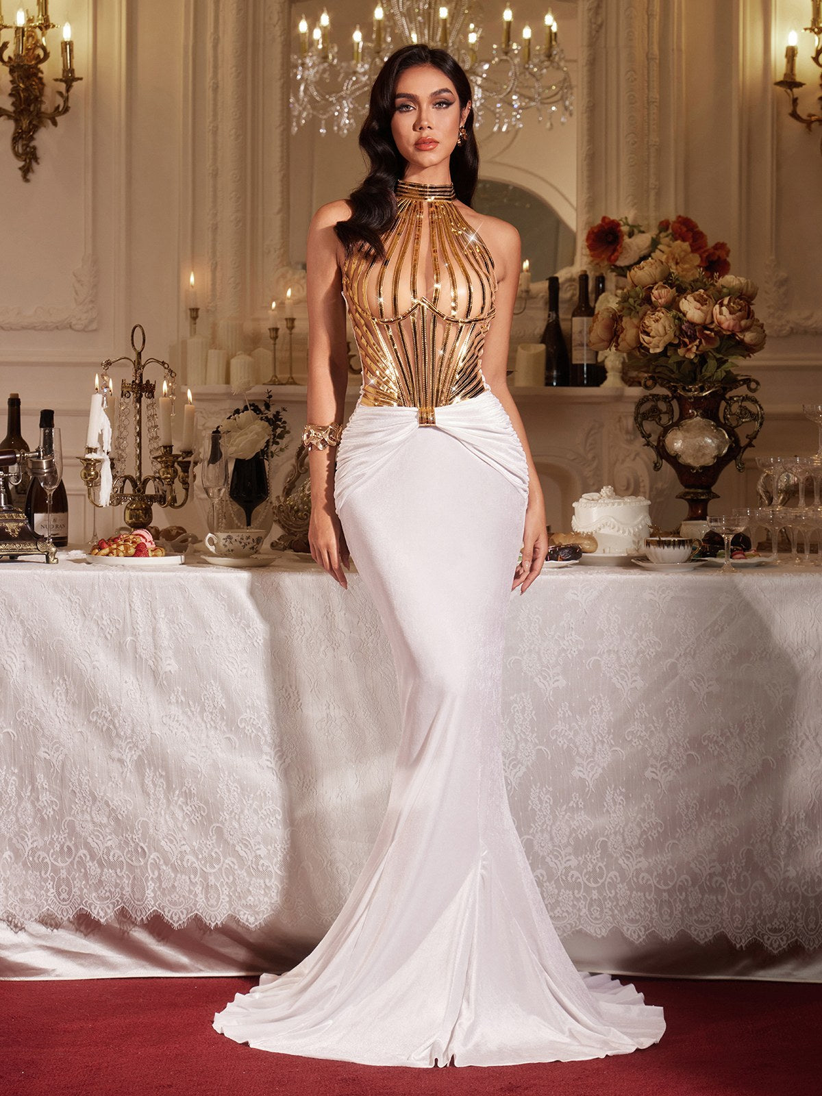 Kryssia Sleeveless Rhinestone Maxi Dress