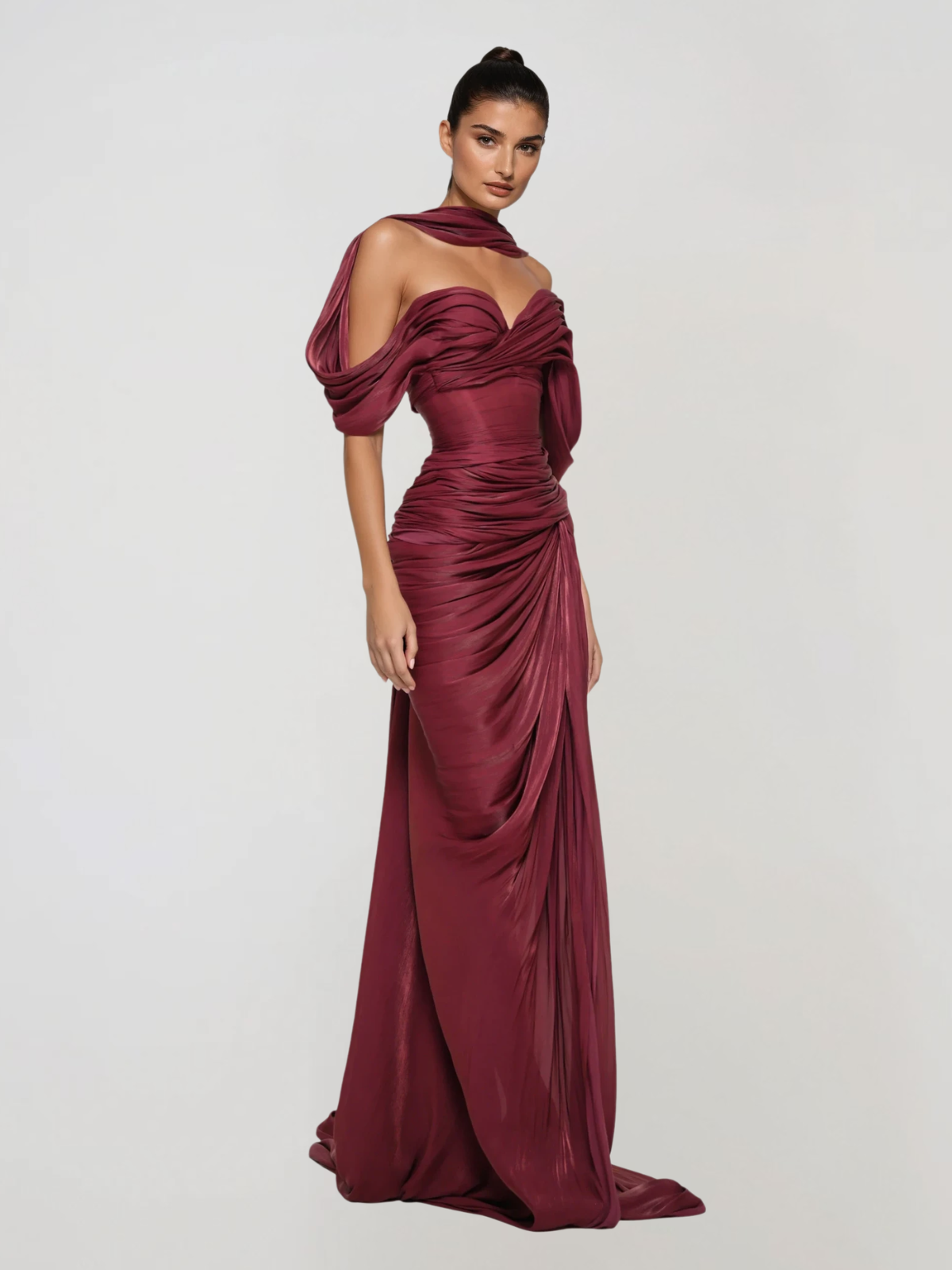 Hailey Strapless Cutout Draped Maxi Dress In Red