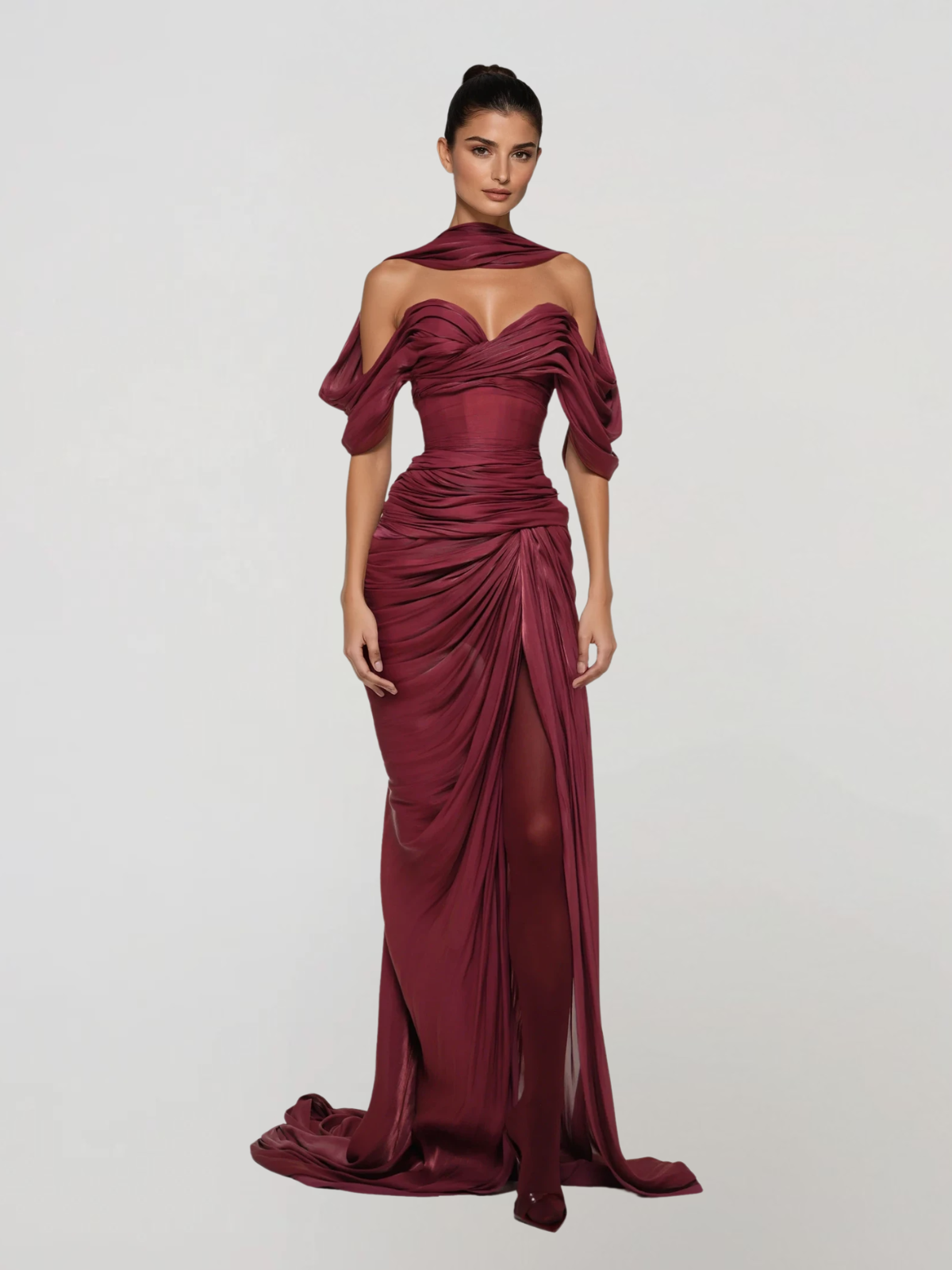Helyxan Sleeveless Ruched Split Maxi Dress