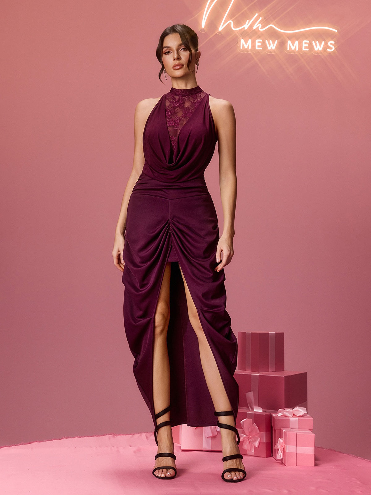 Bovynx Spaghetti Lace Split Maxi Dress