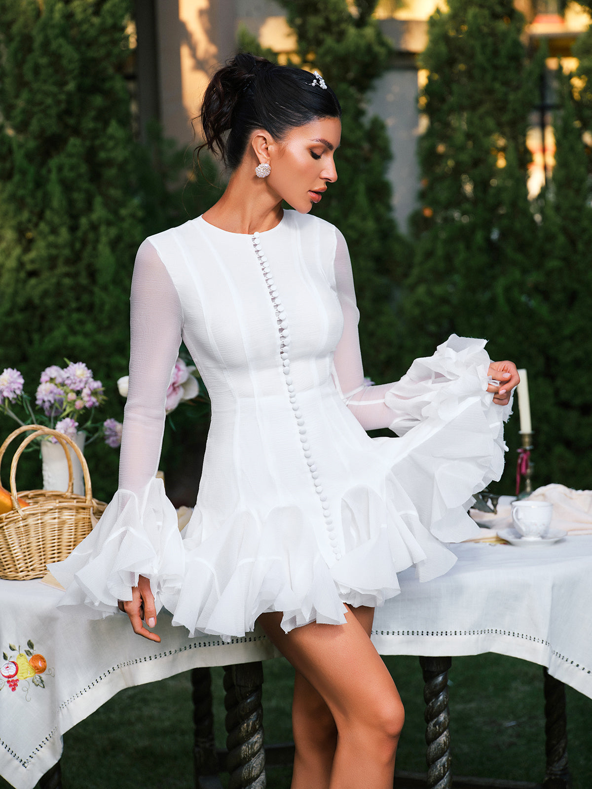 Edyta Long Sleeve Ruffle Mini Dress In White