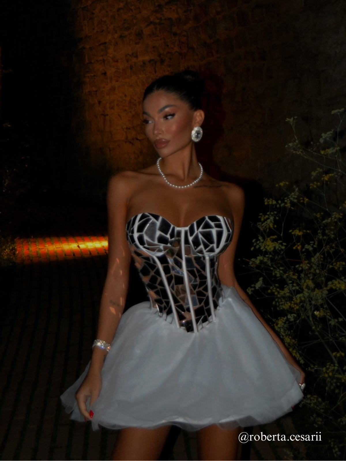 Voryxa Strapless Flower Rhinestone Mini Dress