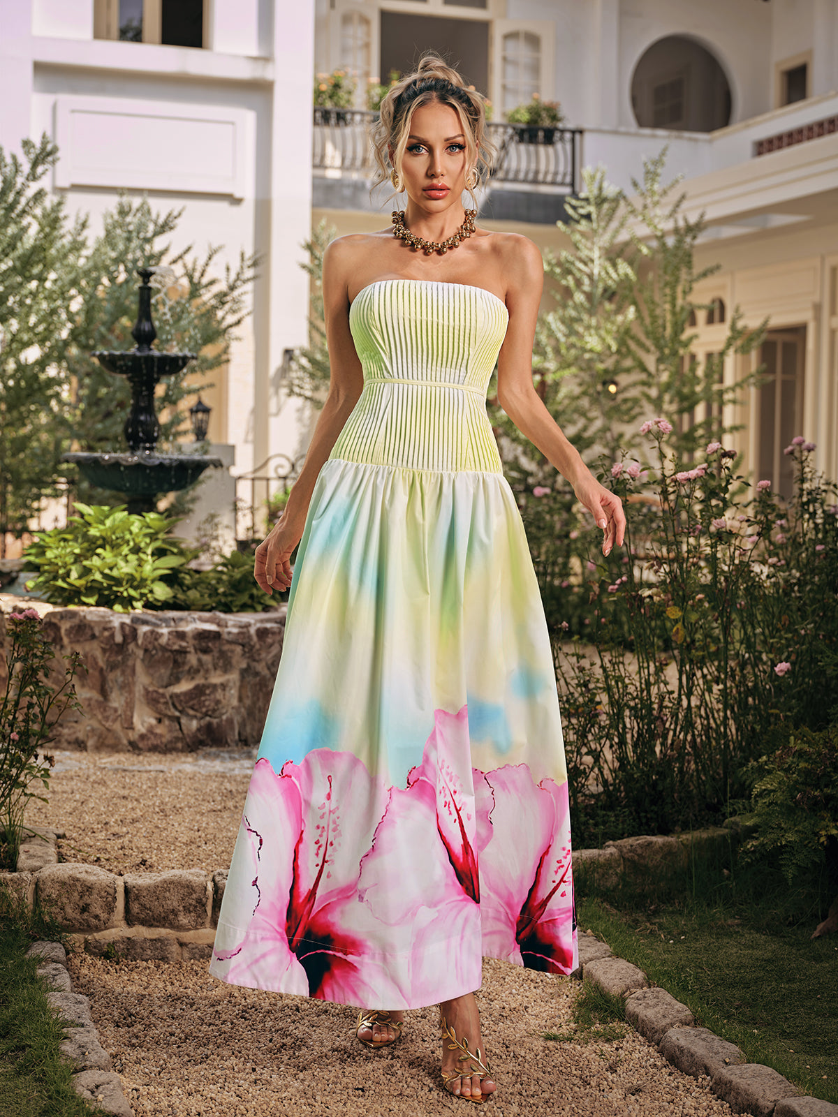 Oracle Strapless Lace Up Bubble Maxi Dress