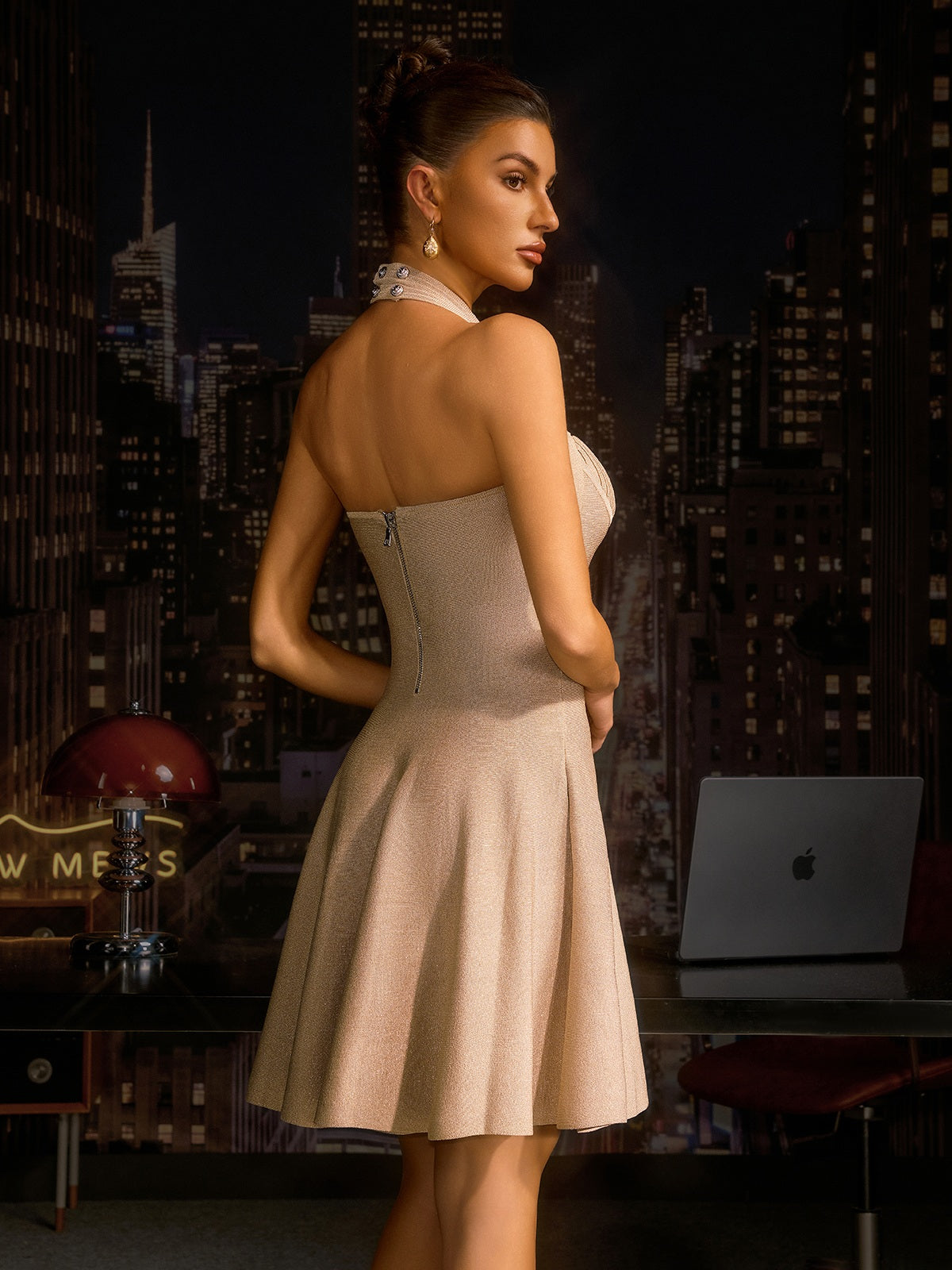 Turn heads in the Aniol Halterneck Knitted Mini Dress in Gold—a radiant piece designed to make you shine. The flattering halterneck neckline offers support and elegance. while the soft knitted fabric provides all-day comfort and a luxurious feel. The rich gold hue catches the light beautifully. making it perfect for nights out. parties. or any moment you want to stand out. Pair with heels and minimal jewelry to let this statement dress take center stage. Confidence has never looked so good.