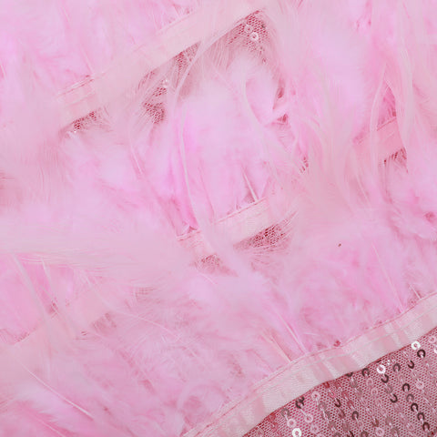 Austyn Tassel Feather Mini Dress In Pink is destined to make herself known at the most extravagant parties. The ultimate show-stopping. party dress you will stand out wearing her. Adorned in pink fringing and sequins with flat beaded panelling on the waist to accentuate your curves and flatter your figure. Individually hand embellished with pink crystal waterfall fringe to create a mesmerising illusion when worn.