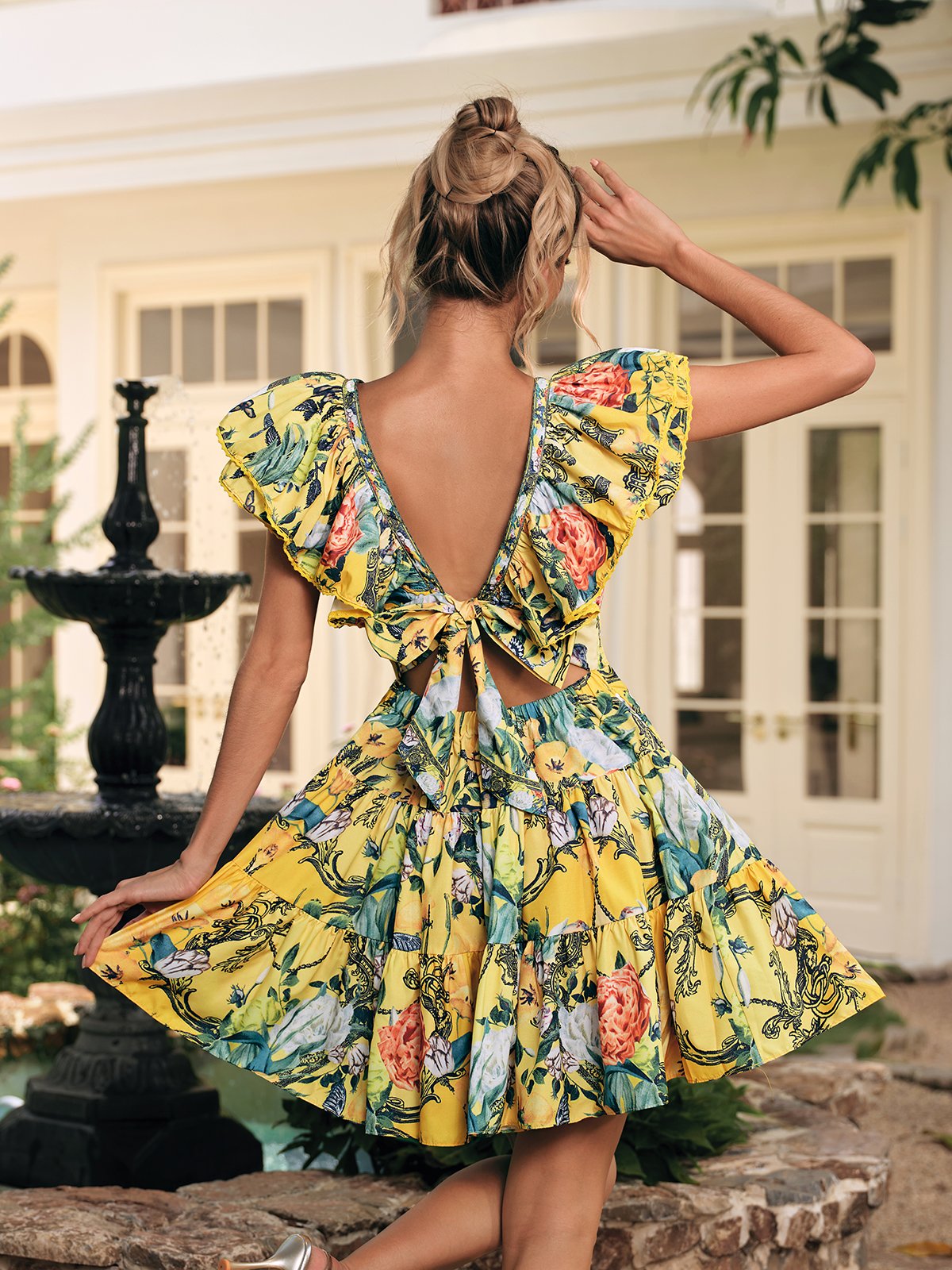 Elevate your style with the Dryon V Neck Ruffle Printed Mini Dress. Featuring a flattering V-neckline and delicate ruffle details. this dress combines playful charm with feminine elegance. Its vibrant print adds a fresh. eye-catching touch. perfect for day or night occasions. Lightweight and comfortable. it's designed to keep you feeling confident and effortlessly chic wherever you go.