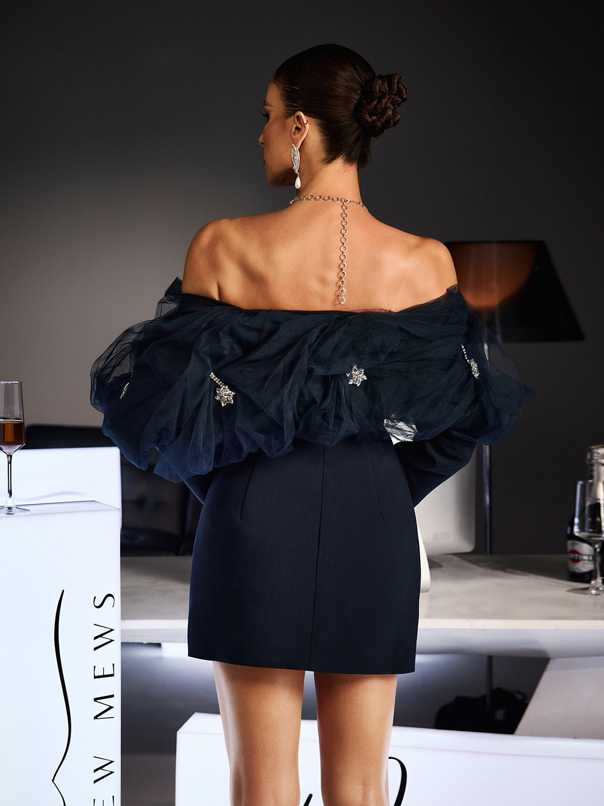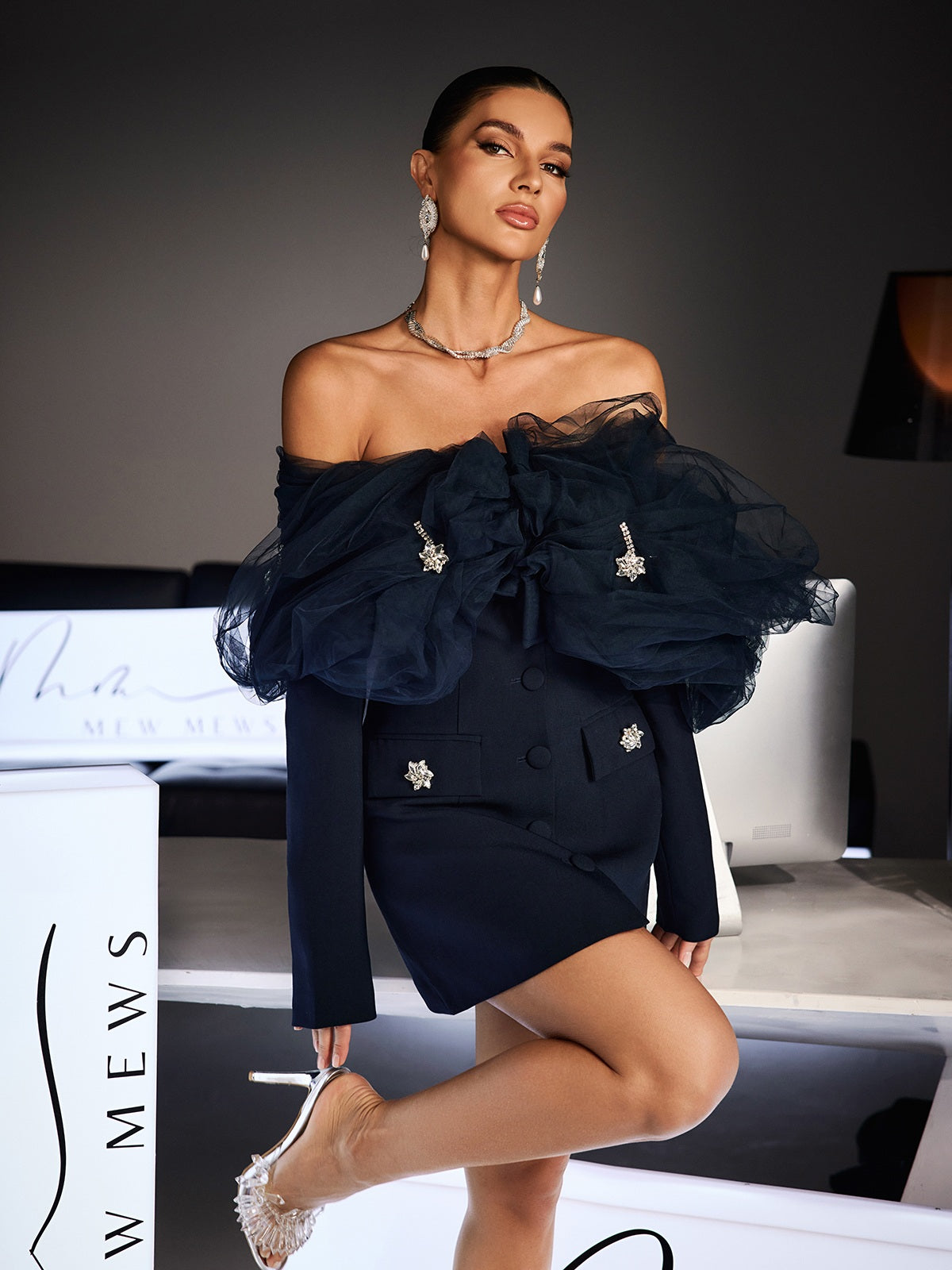 Elevate your evening look with the Ferchar Off Shoulder Ruffle Mesh Mini Dress—a stunning piece that commands attention. The delicate off-shoulder neckline creates an effortlessly chic silhouette. while cascading ruffles add romantic movement and dimension. Sheer mesh fabric delivers a sophisticated. modern edge perfect for date nights. parties. or special occasions. This versatile mini dress flatters various body types and pairs beautifully with heels or statement jewelry. Whether you're heading to a cocktail event or want to turn heads at your next outing. the Ferchar dress combines elegance with contemporary style for an unforgettable impression.