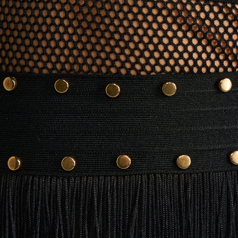 Elevate your evening look with the Fermin Halterneck Bandage Fringe Midi Dress. a stunning piece that commands attention. The flattering halterneck design frames your shoulders beautifully while the signature bandage construction hugs your curves in all the right places. Playful fringe detailing adds movement and dimension. creating an effortlessly chic silhouette that transitions seamlessly from cocktail hour to night out. This midi-length dress strikes the perfect balance between sophisticated and bold—ideal for anyone ready to make a memorable entrance.