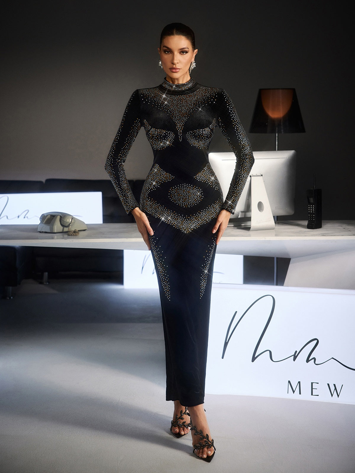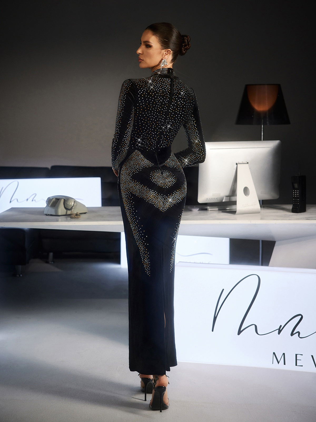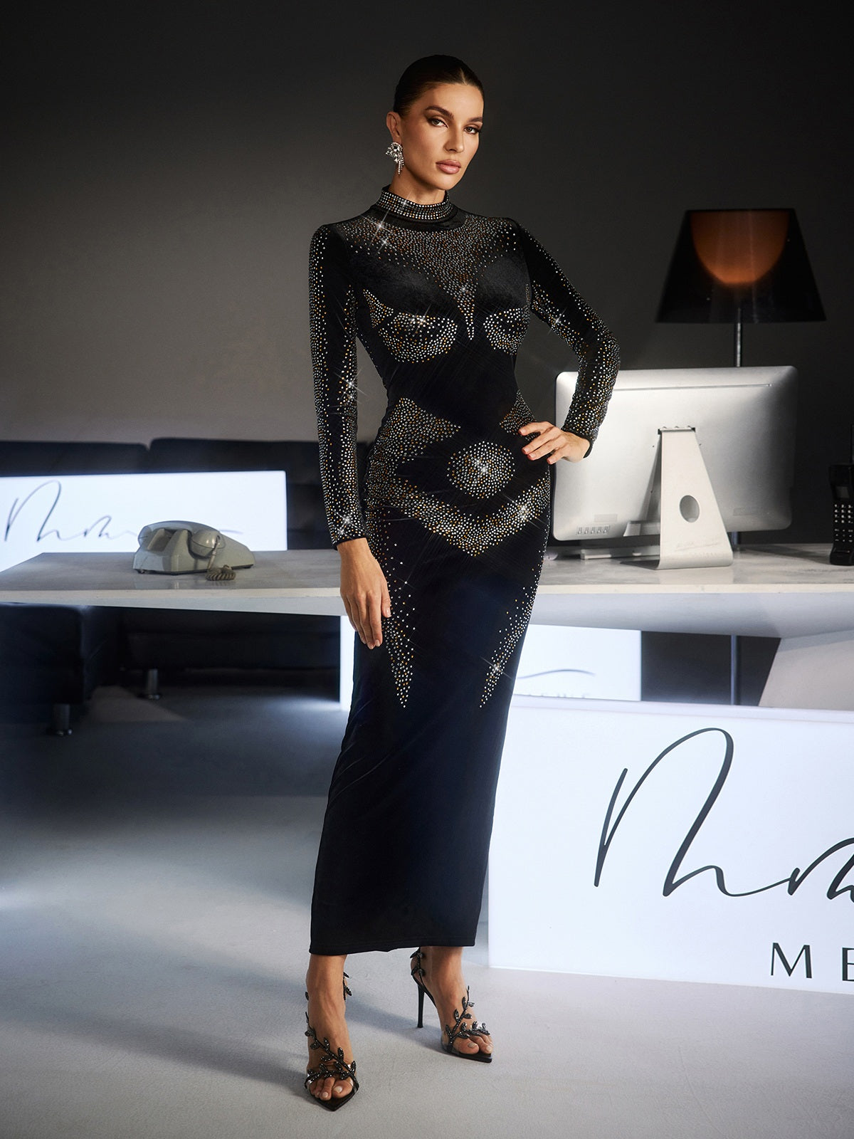 Make a stunning statement in the Fiammetta Long Sleeve Rhinestone Velvet Maxi Dress. where luxurious velvet meets eye-catching sparkle. This floor-length gown features elegant long sleeves and intricate rhinestone embellishments that catch the light beautifully. ensuring you'll turn heads at any occasion. The sumptuous velvet fabric drapes gracefully against your silhouette. offering both comfort and sophistication. Whether you're attending a formal event. holiday celebration. or special evening out. this dress delivers the glamour and refinement you deserve. The timeless maxi silhouette paired with modern embellishments creates a look that's both classic and contemporary. Discover the confidence that comes with wearing a truly exceptional piece.