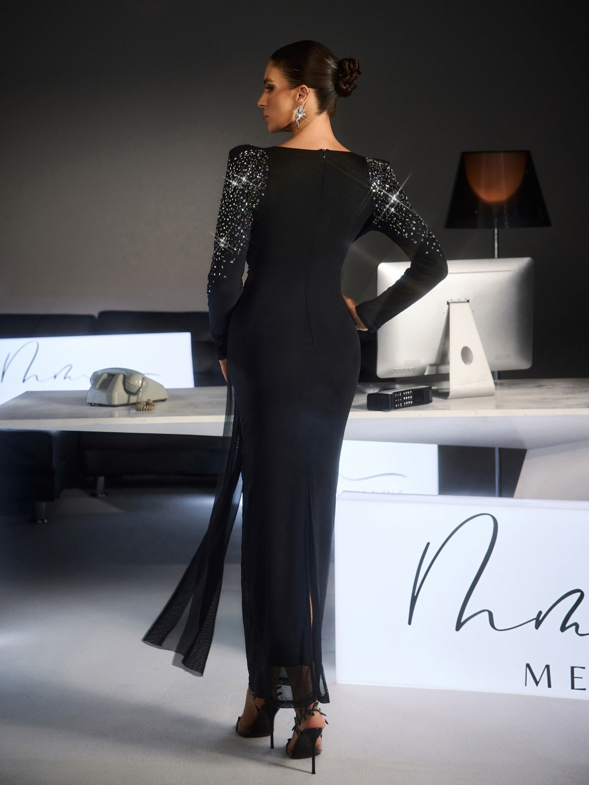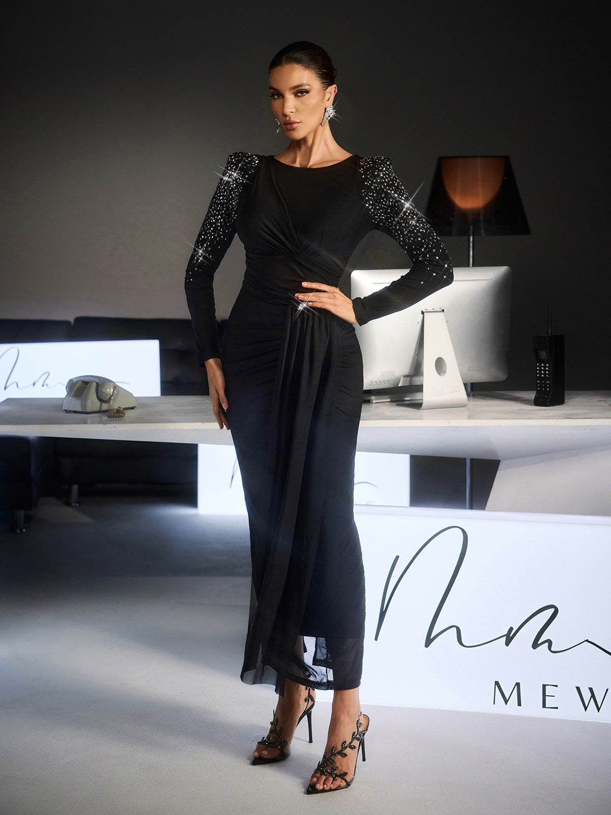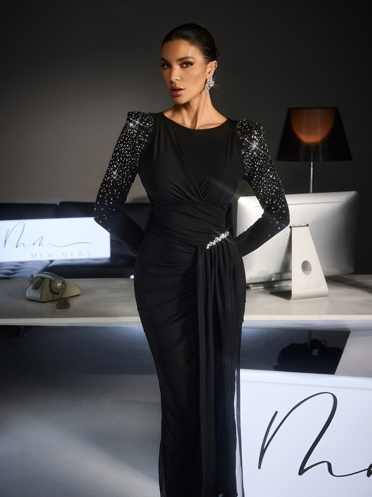 Embrace elegance with the Fianna Long Sleeve Ruched Rhinestone Maxi Dress. a captivating piece designed for those who refuse to compromise on style. Featuring strategically placed ruching that flatters your figure and shimmering rhinestone details that radiate sophistication. this dress transforms any moment into something memorable. The flowing maxi length and long sleeves create a graceful. refined silhouette perfect for galas. weddings. or upscale events. Premium fabric construction ensures you'll feel as beautiful as you look. with comfortable wear throughout the evening. The combination of textured ruching and sparkling embellishments delivers a dynamic. eye-catching aesthetic that sets you apart. Invest in a dress that celebrates your individuality and elevates your special occasions.