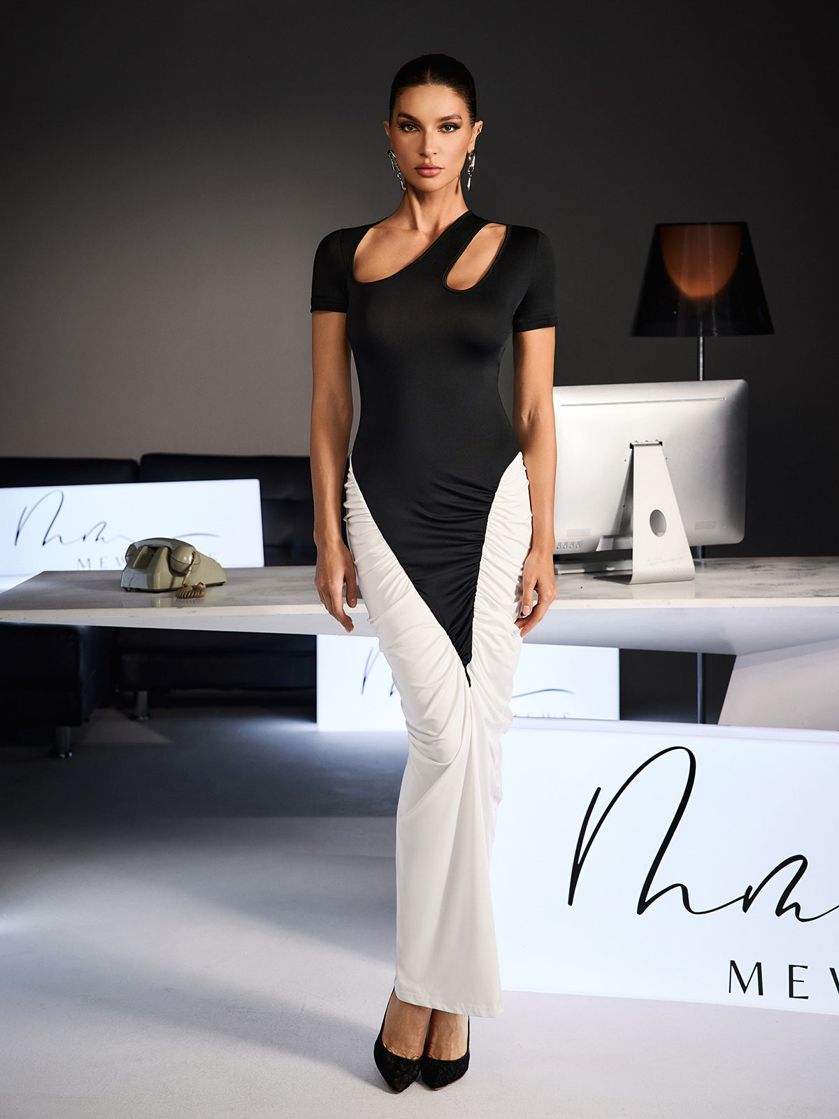 Captivate with the Fidelia Short Sleeve Cutout Ruched Maxi Dress. a stunning design that balances elegance with contemporary edge. Strategic cutout details showcase your style while flattering ruching creates a beautifully sculpted silhouette. The short sleeves offer a fresh. modern touch. while the flowing maxi length delivers timeless sophistication. This dress works beautifully for evening events. special occasions. or any moment when you want to feel absolutely radiant. The thoughtful combination of textured ruching and modern cutout elements creates visual interest and dimension that sets you apart. Premium fabric drapes gracefully. ensuring comfort and confidence throughout the night. Whether you're attending galas. celebrations. or upscale gatherings. this dress delivers the perfect blend of classic beauty and fashion-forward design. Invest in a piece that makes you feel powerful. elegant. and unforgettably stunning.
