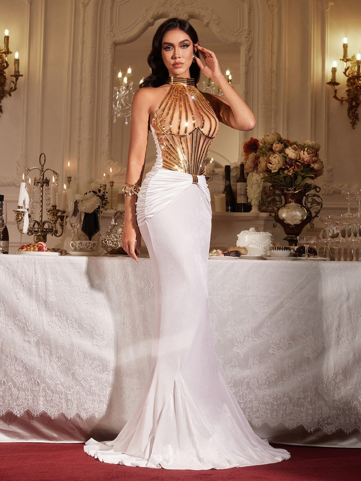 Make a bold impression in the Finnur Halterneck Ruched Maxi Dress. where modern design meets timeless sophistication. The striking halterneck silhouette frames your shoulders beautifully while strategic ruching creates flattering curves and visual interest. This floor-length gown offers an effortless blend of elegance and contemporary style. perfect for cocktail events. formal dinners. or red-carpet moments. The thoughtful construction ensures comfort without compromising on glamour. allowing you to move with confidence and grace. Invest in a dress that transforms how you feel—refined. powerful. and unforgettable.