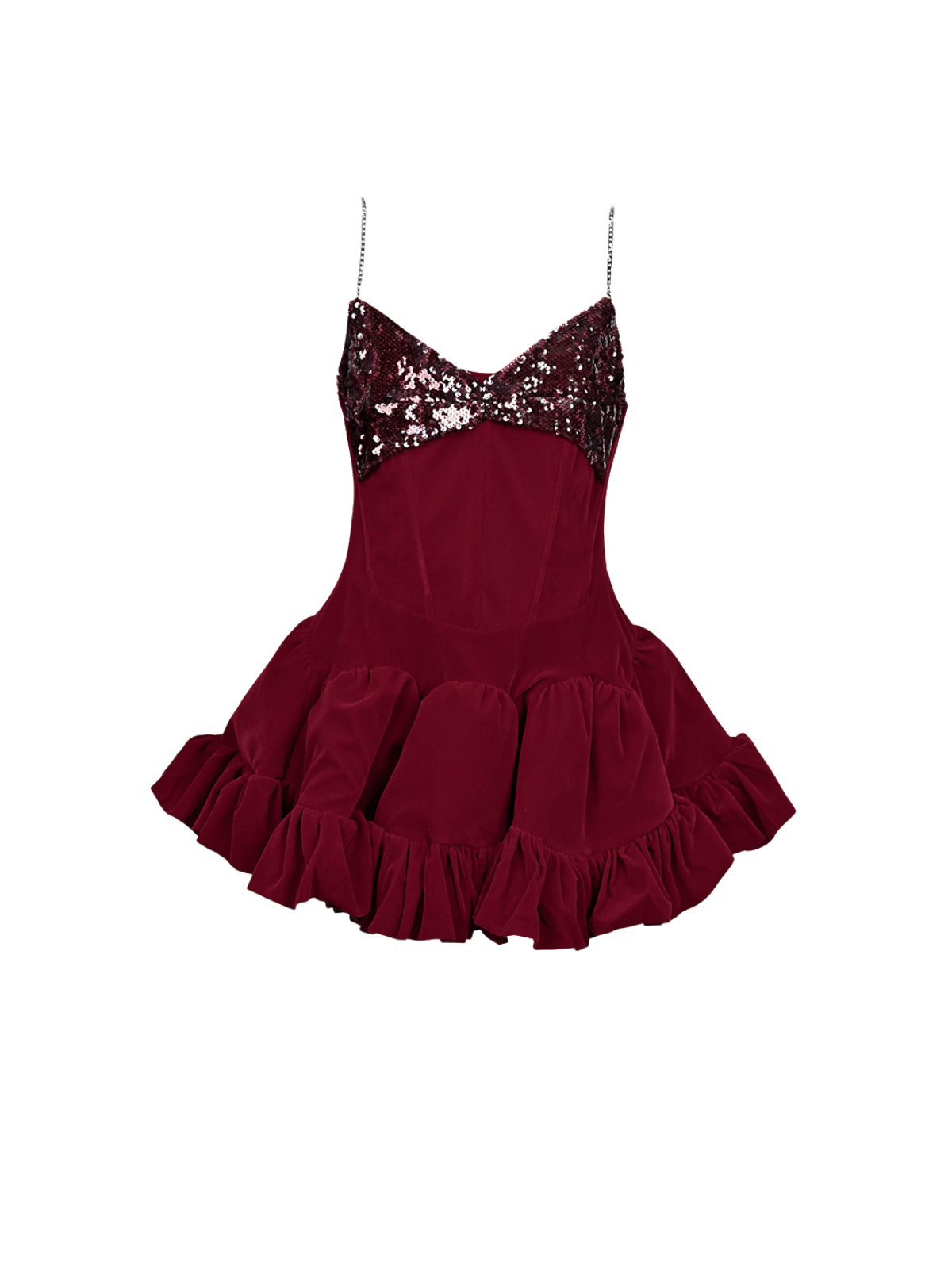 Elevate your evening look with this stunning Iridiate Spaghetti Sequin Velvet Mini Dress. Crafted from luxurious velvet. the shimmering sequin detailing catches light from every angle. creating an eye-catching iridescent effect that commands attention. The delicate spaghetti straps offer a sophisticated silhouette. while the mini length keeps things playful and modern. Perfect for cocktail parties. nights out. or any occasion where you want to shine. This dress transforms you into the center of attention with its glamorous design and flattering fit.