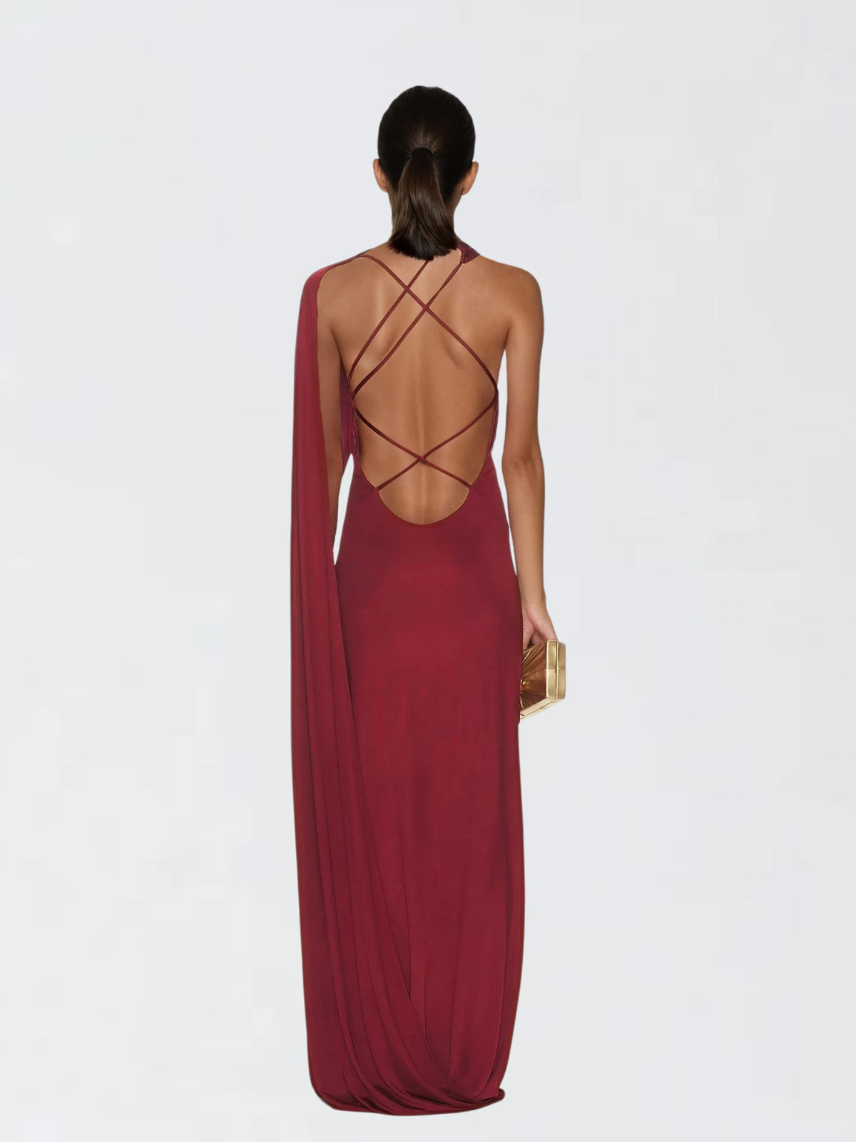 Elevate your evening wardrobe with this stunning backless shawl maxi dress—a sophisticated piece that commands attention. The dramatic open back creates an alluring silhouette. while the flowing maxi length offers timeless elegance. The attached shawl drapes gracefully. providing versatile styling options and an extra layer of refinement. Perfect for formal events. galas. or upscale celebrations. this dress combines daring design with wearable luxury. The backless cut flatters your figure while the maxi silhouette ensures graceful movement. Make a memorable impression in a gown that balances bold fashion with classic sophistication.
