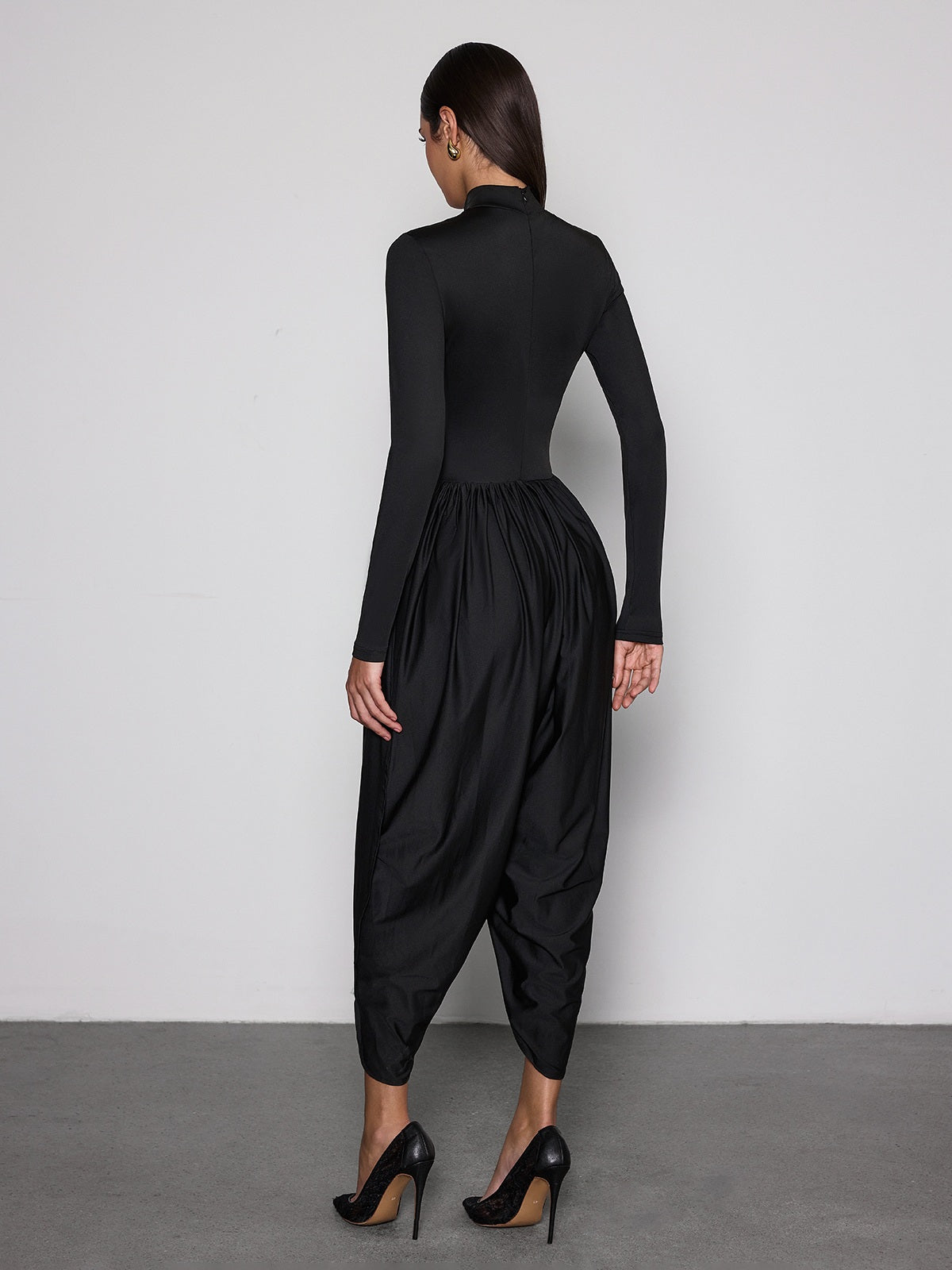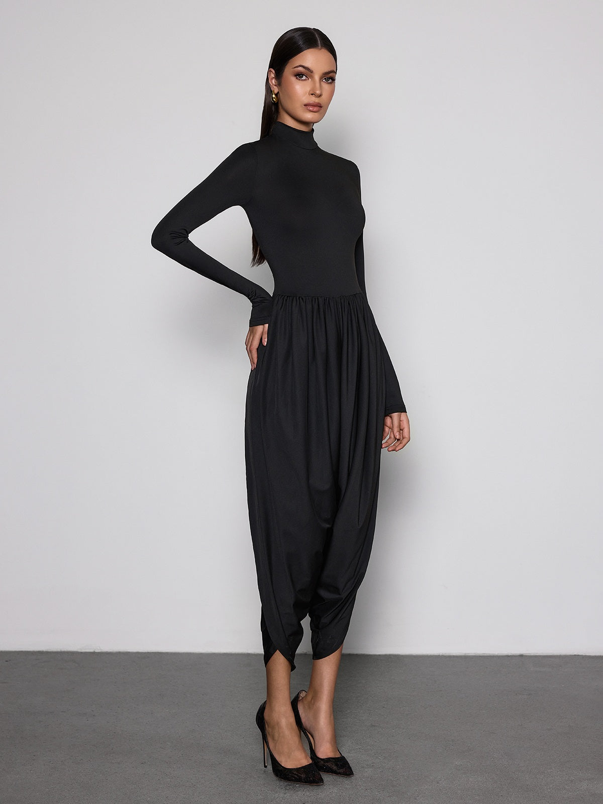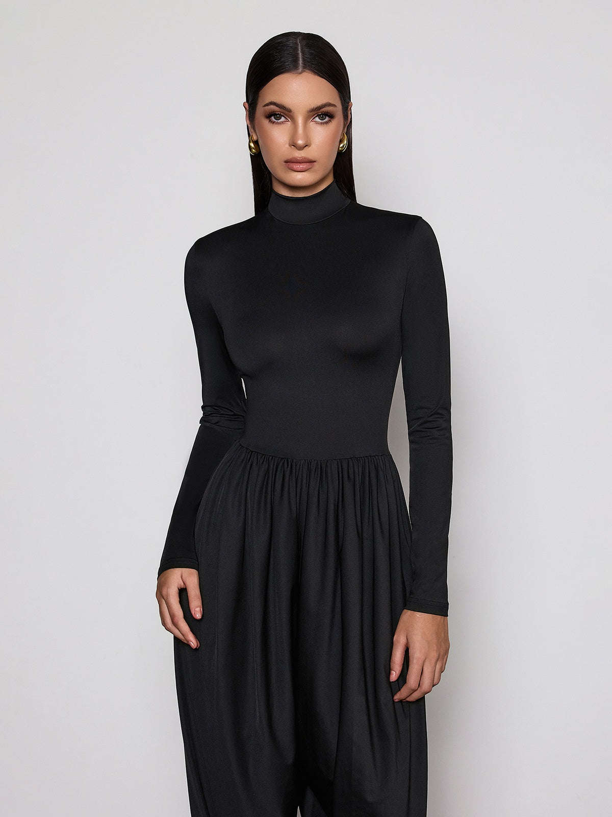 Discover bold sophistication with the Laurien Long Sleeve Ruched Jumpsuit. Its flattering ruched detailing enhances your silhouette. while the long sleeves add a touch of elegance and coverage. Designed for both comfort and style. this jumpsuit is perfect for making a confident statement at any event or night out. Step into versatile glamour that effortlessly elevates your look.