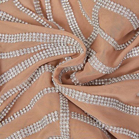 Celebrate your next holiday in the Layla Diamante Mini Dress! A skin tone mesh overlay is adorned with sparkle crystal that forms curvey lines across this dress. The bodycon silhouette continues down to a mini hem.