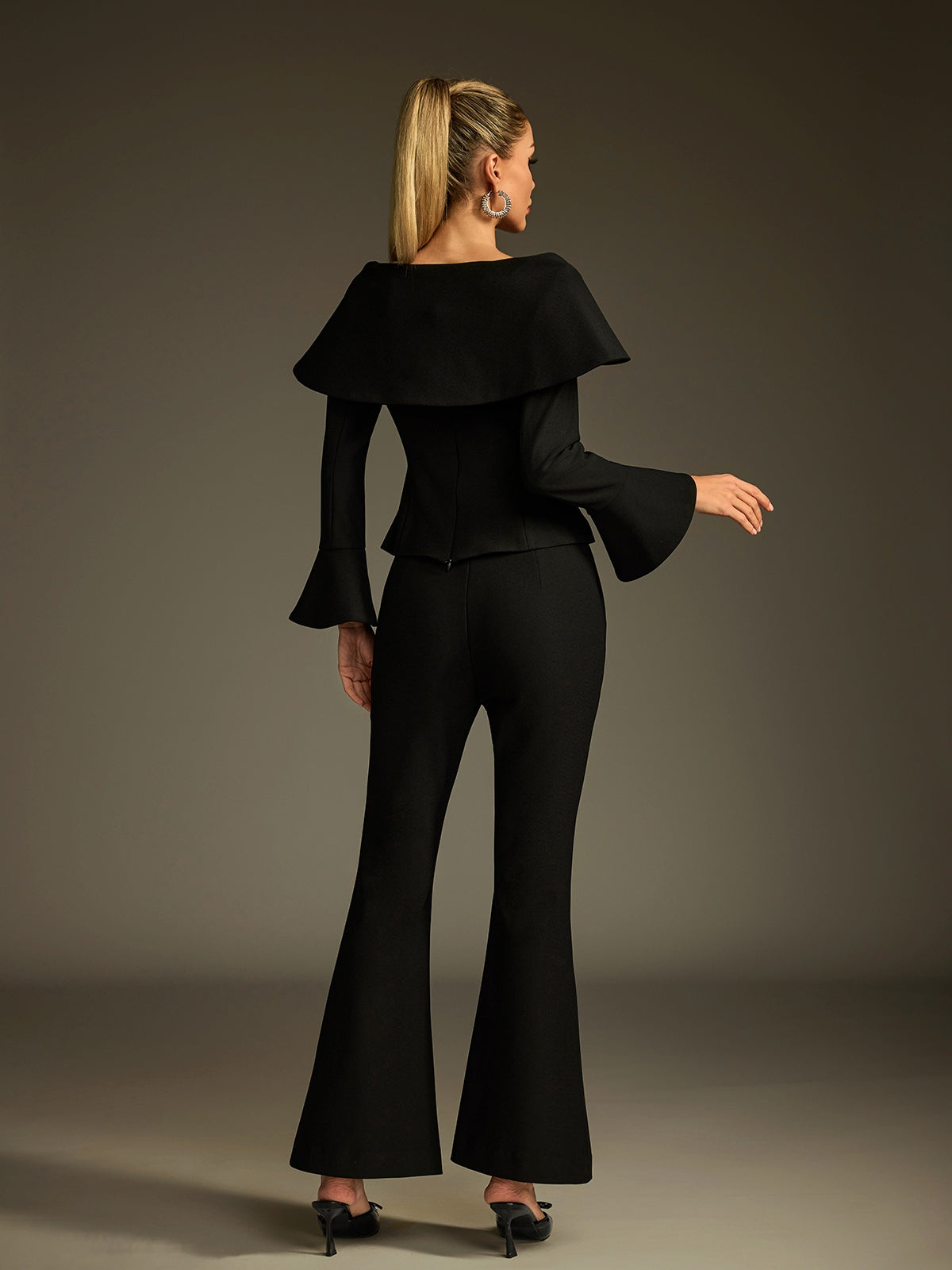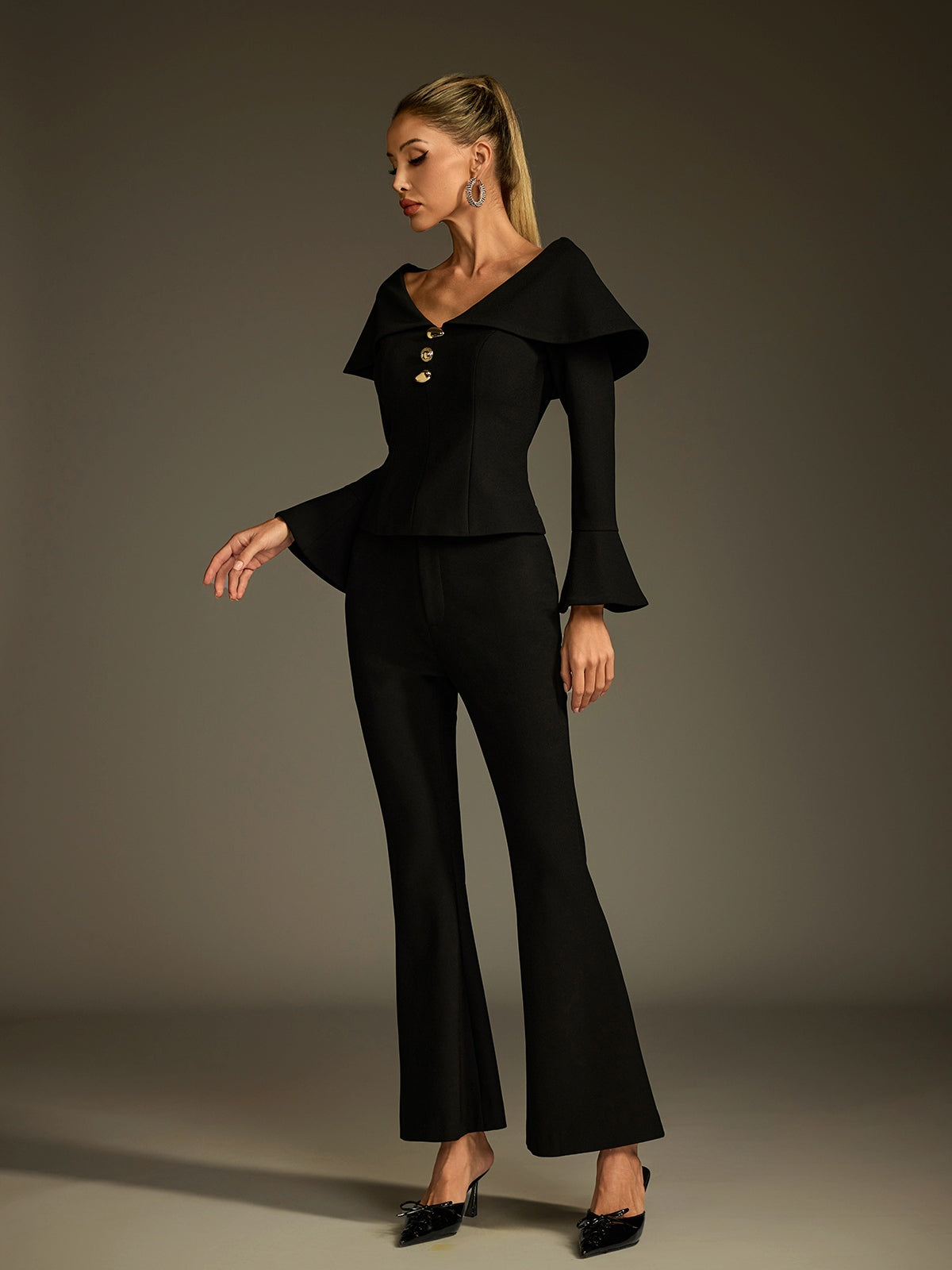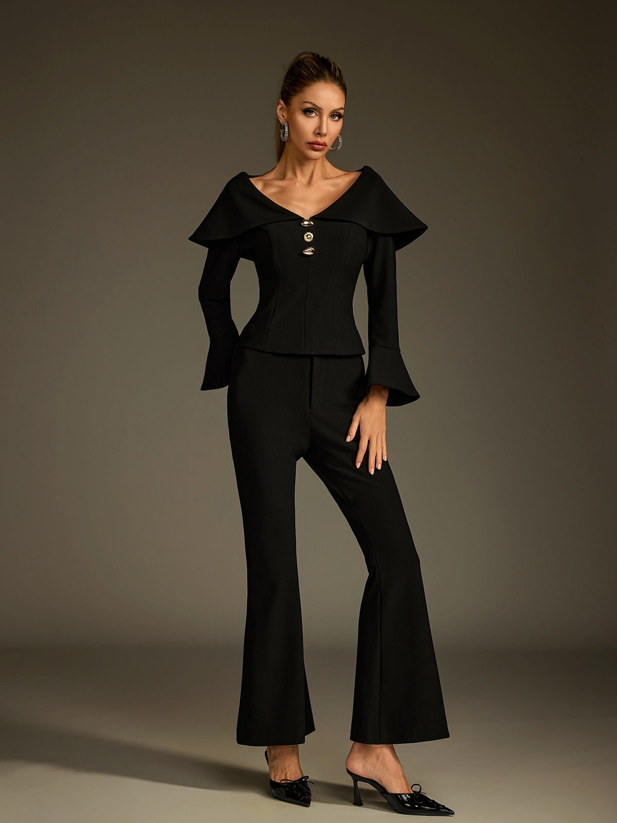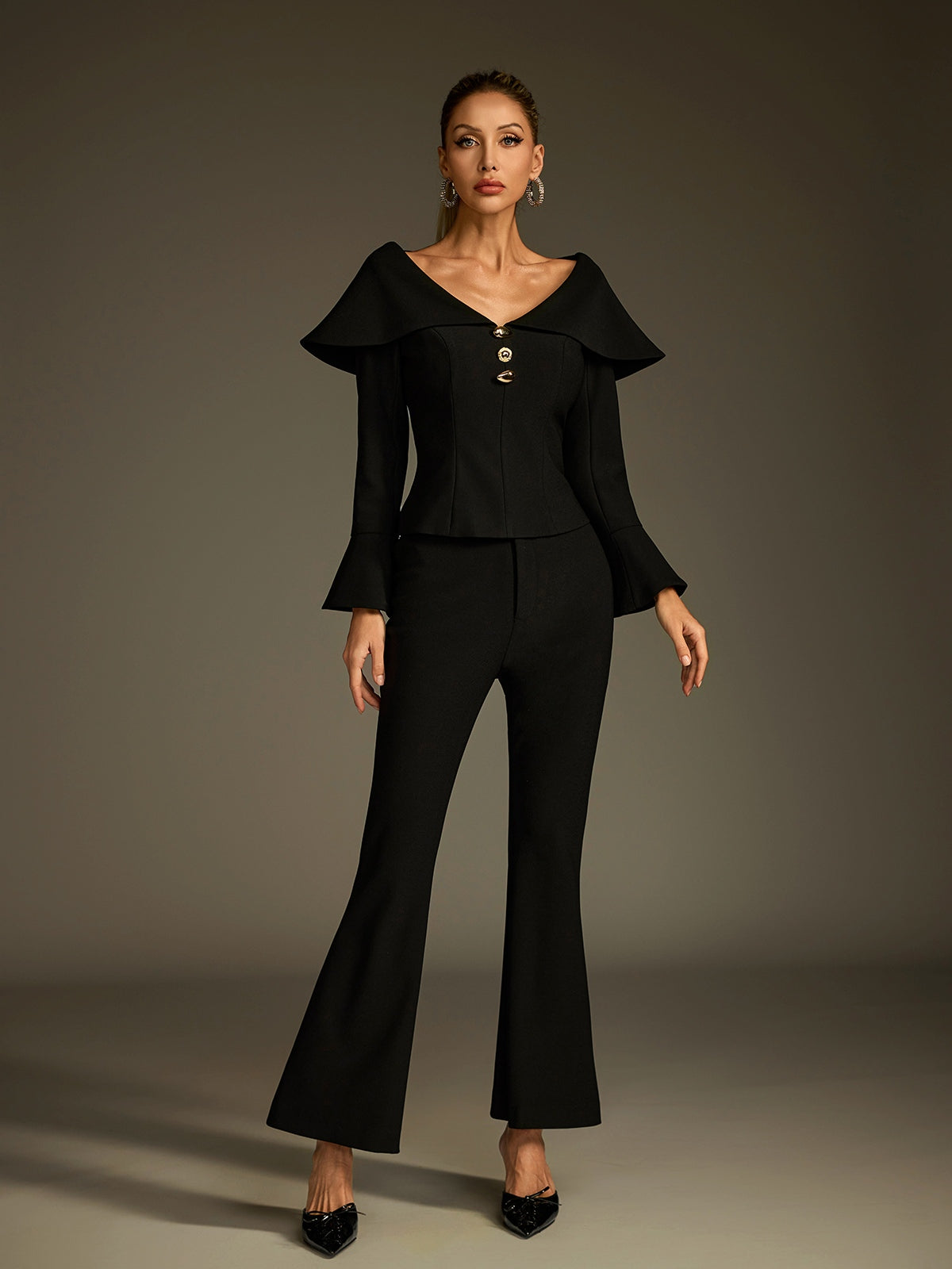 Elevate your wardrobe with the Ludger Collar Flare Pants Set. designed to combine timeless sophistication with modern flair. Featuring a sharp collar and a flattering flare fit. this set offers a chic silhouette that effortlessly transitions from office to evening. Crafted for both comfort and style. it's perfect for making a confident statement wherever you go. Embrace elegance that moves with you.