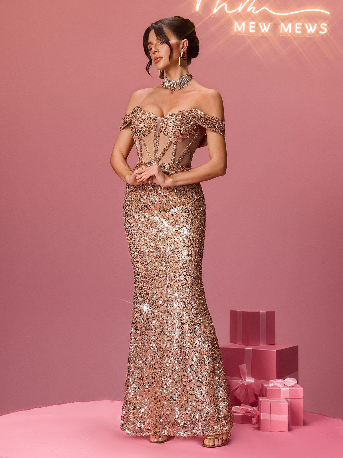 Elevate your evening elegance with this stunning Mapmaker Off Shoulder Rhinestone Maxi Dress. The sweeping silhouette flatters every figure while the shimmering rhinestone embellishments catch the light with every movement. ensuring you command attention at any formal occasion. The off-shoulder neckline adds a touch of sophisticated allure. while the flowing maxi length provides graceful movement and timeless appeal. Perfect for galas. weddings. or upscale events where you want to make an unforgettable impression.