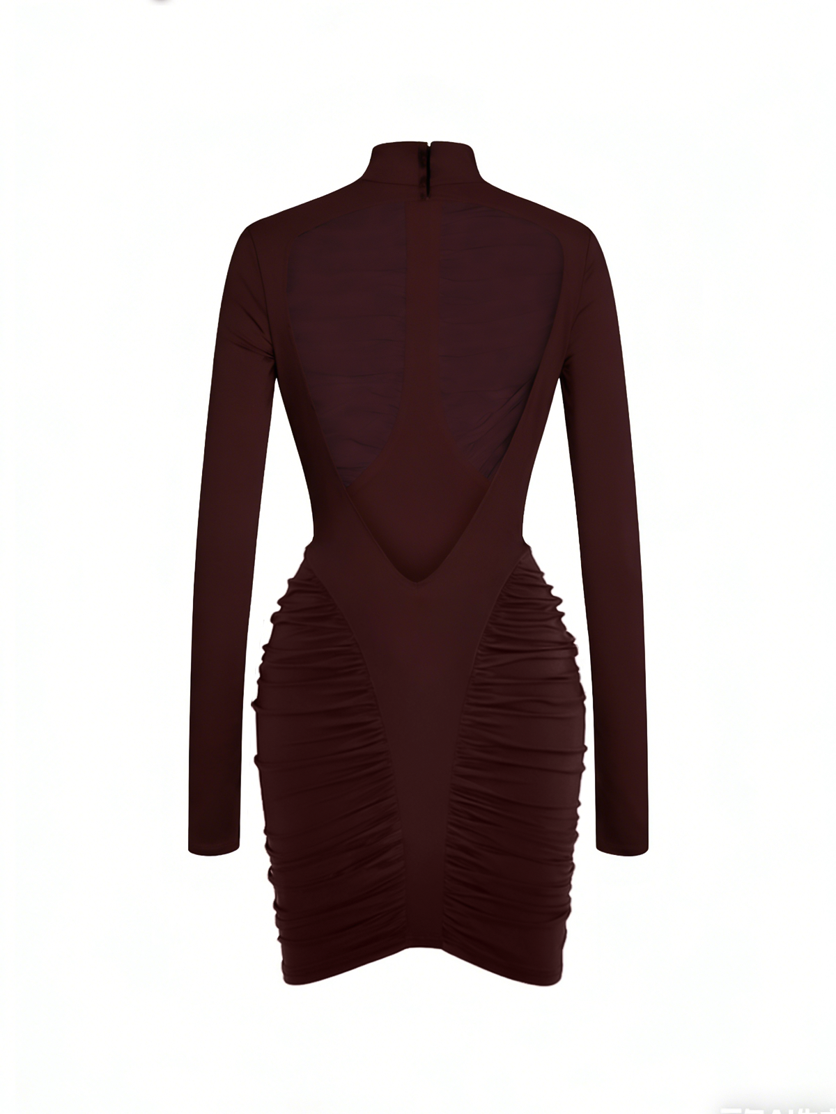Turn heads in this stunning backless mini dress that combines elegance with modern edge. The wine hue flatters all skin tones while the ruched detailing creates a flattering silhouette that hugs your curves in all the right places. The daring backless design makes a bold statement. perfect for nights out when you want to feel confident and Glamorous. Versatile enough to dress up for special occasions or down for a night with friends. this piece is a wardrobe essential that delivers maximum impact with minimal effort.