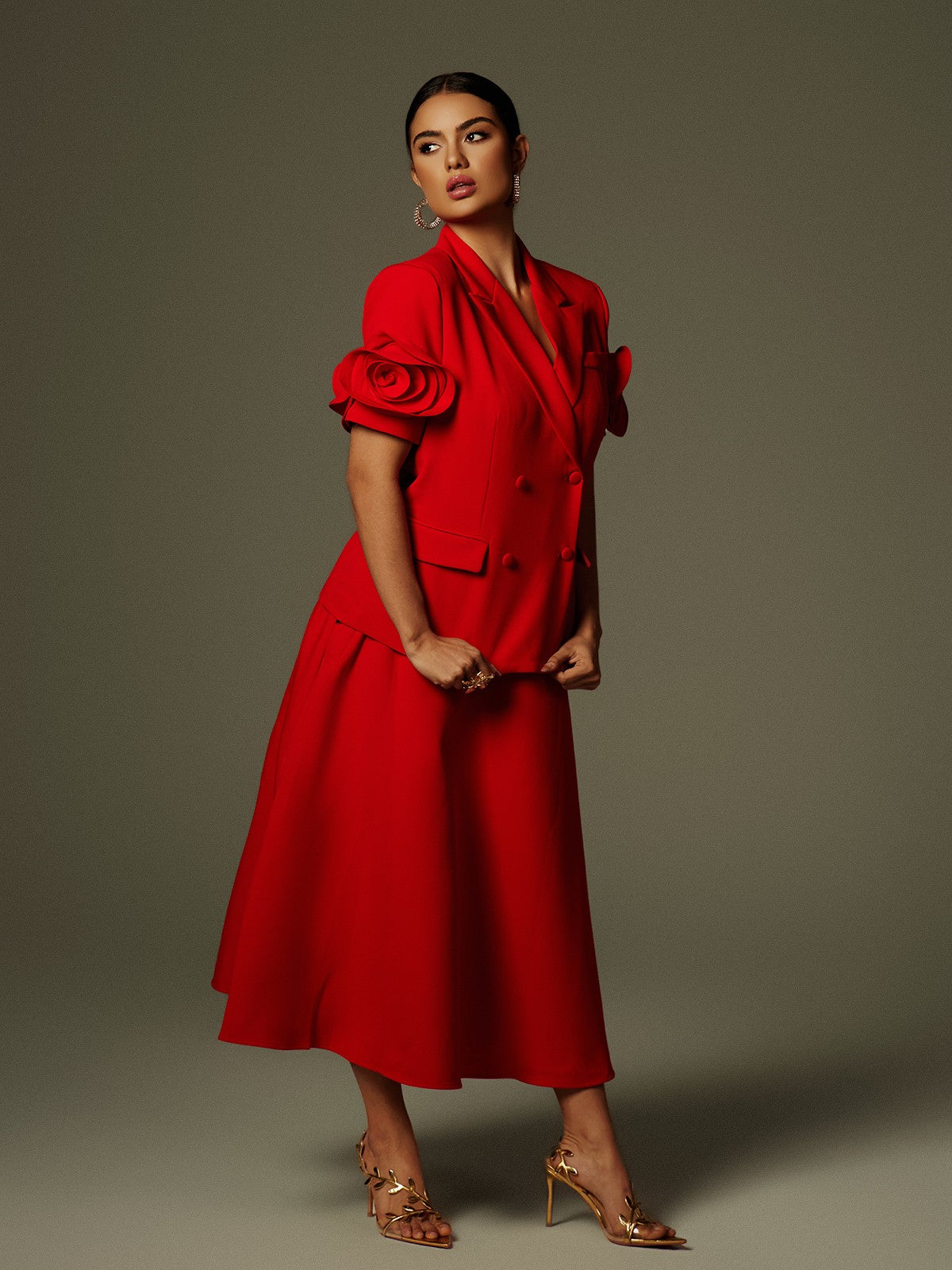 Elevate your style with the Naniel Short Sleeve Button Up Flower Blazer Set! This premium set features a beautifully designed short sleeve blazer with a delicate floral pattern. perfect for adding a touch of sophistication to any outfit. The button up closure adds a modern twist. making this a versatile addition to your wardrobe. Upgrade your wardrobe and make a statement with the Naniel Blazer Set!