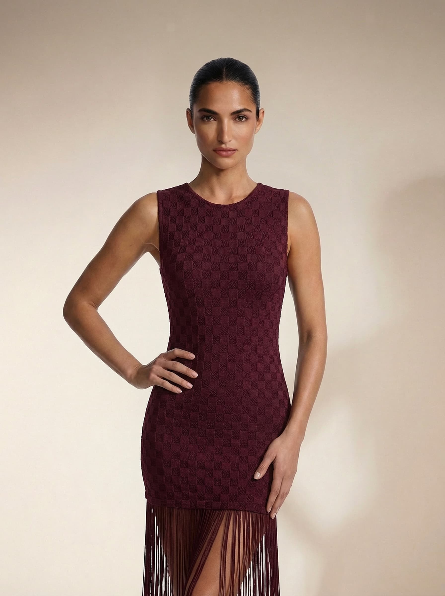 Elevate your wardrobe with the Navryn Sleeveless Fringe Plaid Midi Dress. a striking piece that combines classic plaid styling with modern edge. The sleeveless silhouette offers versatility for layering. while the midi length provides sophisticated coverage. Playful fringe detailing adds movement and texture. making this dress perfect for both casual outings and dressed-up occasions. The timeless plaid pattern ensures easy pairing with your favorite accessories and footwear.