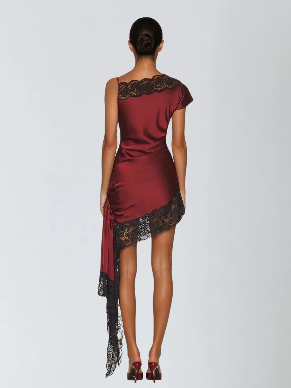 Elevate your evening look with the Olvex One Shoulder Lace Draped Mini Dress—a stunning piece that combines elegance with modern edge. The delicate lace detailing and asymmetrical one-shoulder design create an effortlessly chic silhouette that flatters every figure. The graceful draping adds movement and sophistication. making it perfect for cocktail parties. date nights. or any occasion where you want to turn heads. Versatile enough to dress up with heels or down with sneakers. this mini dress is your go-to for making a memorable impression.