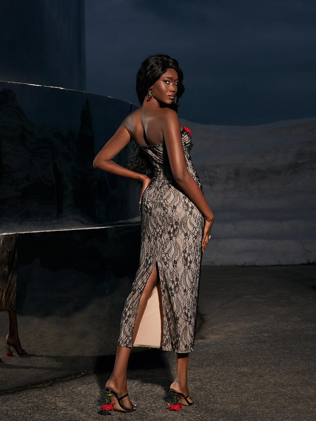 Elevate your cocktail party outfits with our Phoenix Patchwork Flower Lace Dress. Show off your unique style in this fabulously intricate dress featuring black mesh and a patchwork of pretty flowers. Get ready to take flight with this one-of-a-kind piece!