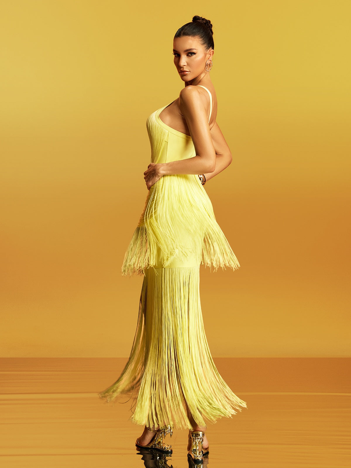 Elevate your wardrobe with the Quelys V Neck Fringe Midi Dress—a captivating piece that seamlessly blends sophistication with playful movement. The flattering V neckline draws attention upward while the cascading fringe detail adds dynamic texture and dimension to every step. Cut to a versatile midi length. this dress transitions effortlessly from daytime elegance to evening allure. Perfect for those who refuse to compromise between style and comfort. the Quelys dress makes a memorable statement at any occasion. Discover why this design is a must-have for fashion-forward individuals seeking that perfect balance of refined charm and contemporary flair.