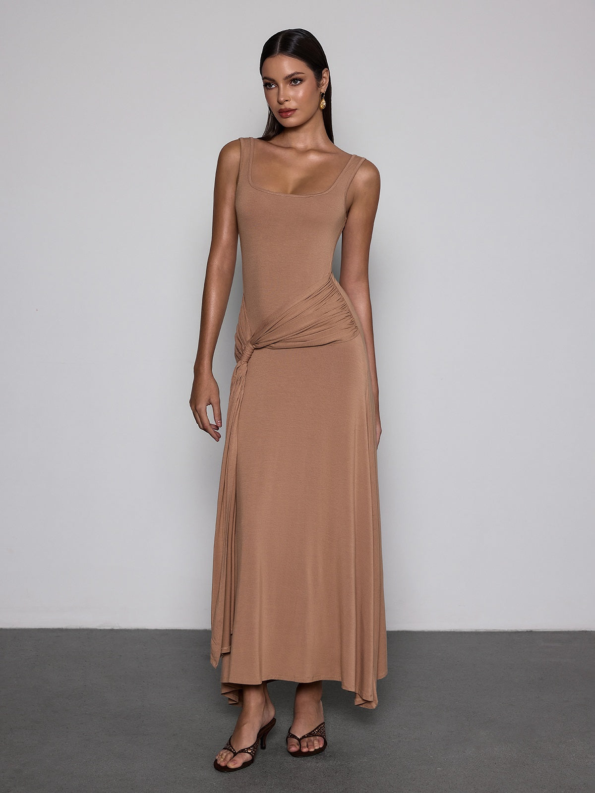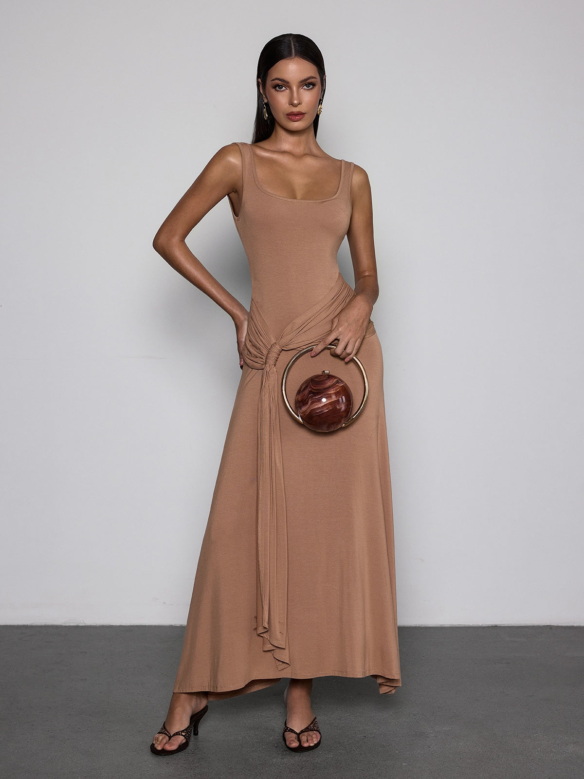 Elevate your wardrobe with the Saeldrin Spaghetti Draped Maxi Dress. This flowing dress features delicate spaghetti straps and elegant draping that flatters every silhouette. Perfect for both casual outings and special occasions. it combines comfort with timeless style. making you feel effortlessly chic wherever you go. Embrace grace and confidence in this versatile maxi dress.
