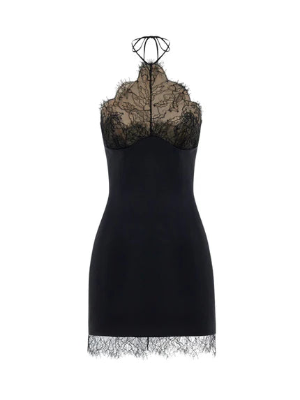 Unleash your wild side with this stunning Subductix Halterneck Lace Mini Dress In Black that combines bold back print with delicate lace detailing. The flattering halter neckline creates an elegant silhouette while the figure-hugging cut showcases your curves beautifully. Perfect for nights out. parties. or whenever you want to make a statement. this dress transitions effortlessly from casual to chic. The intricate lace overlay adds sophistication to the daring animal print. giving you a look that's both fierce and refined. Turn heads and feel confident in a piece that's as unique as you are.