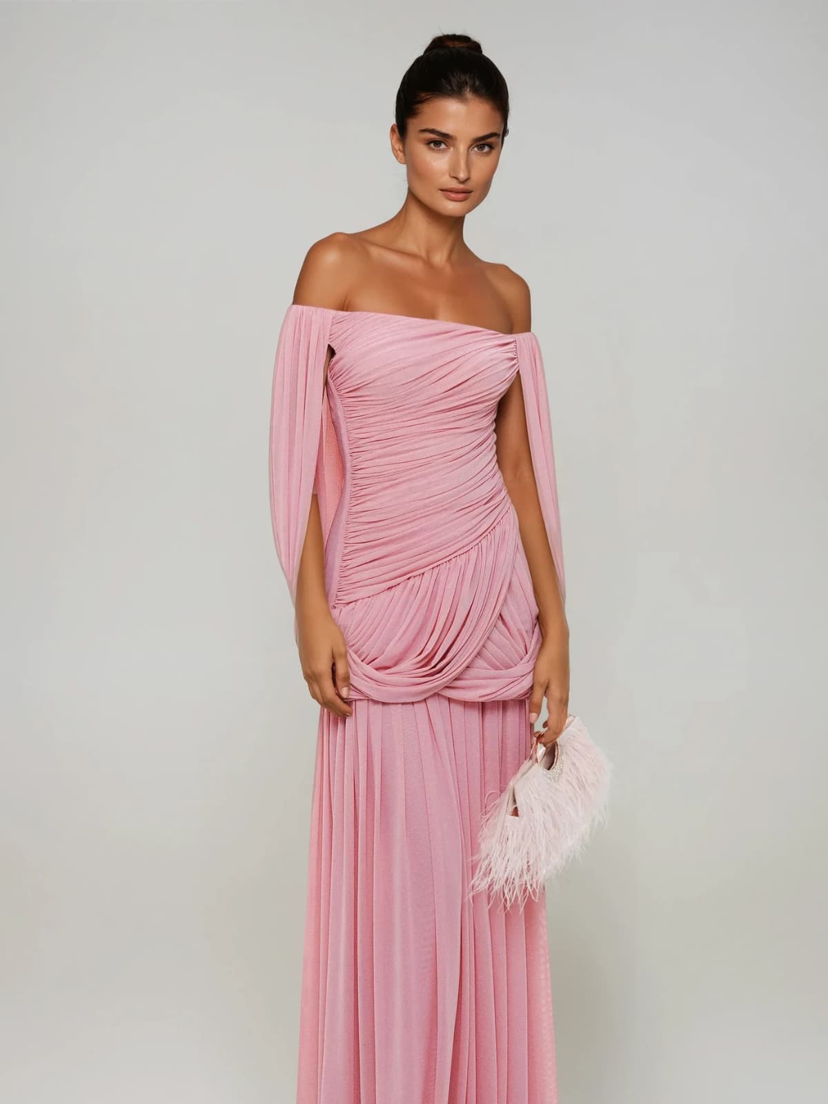 Elevate your evening look with this stunning Zoryrin Off Shoulder Mesh Ruched Maxi Dress. The delicate ruched detailing creates a flattering silhouette while the sheer mesh fabric adds an elegant. sophisticated touch. Perfect for formal events. parties. or special occasions. this dress combines timeless style with modern design. The off-shoulder neckline frames the shoulders beautifully. while the flowing maxi length provides graceful movement. A versatile piece that transitions seamlessly from day to night. this dress is sure to turn heads and make you feel confident and radiant.