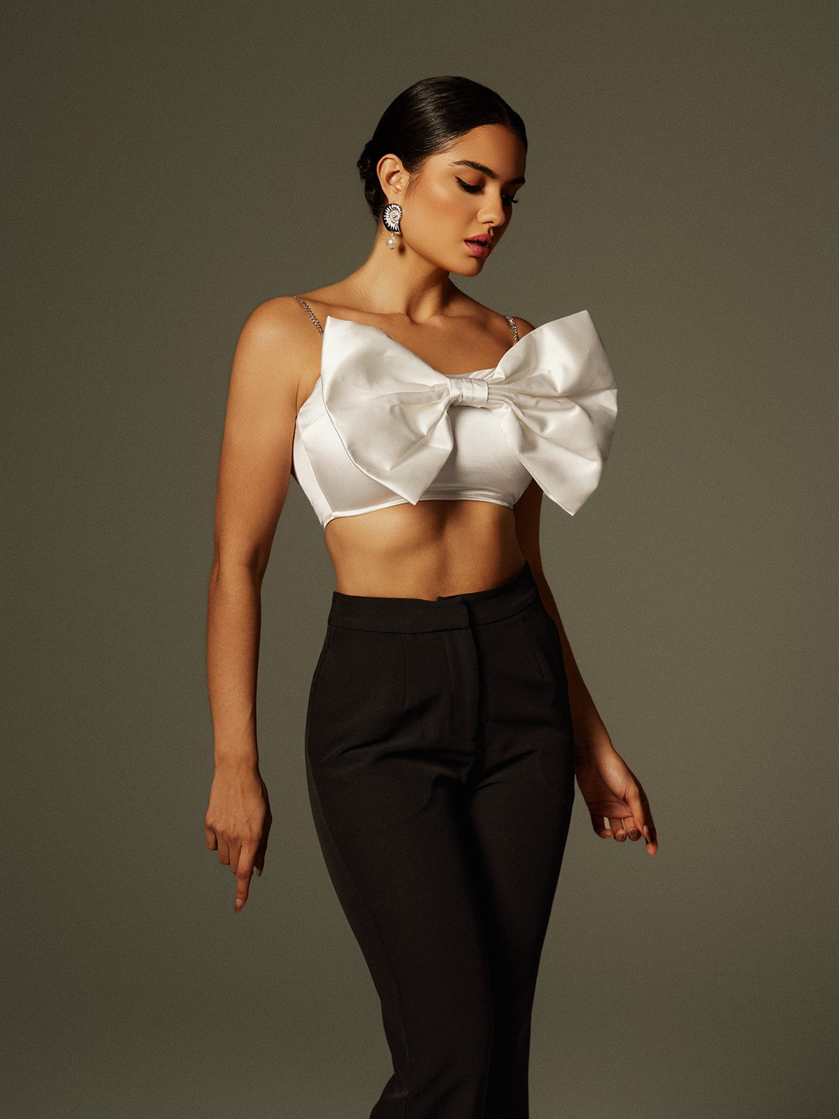 Unleash your confidence in the eye-catching Zylara Strapless Bow Twisted Pants Set! This set features a stylish strapless top with a beautiful bow and trendy twisted detailing. paired with comfortable and chic pants. Perfect for a night out or a day at the office. this set will make you feel and look your best.